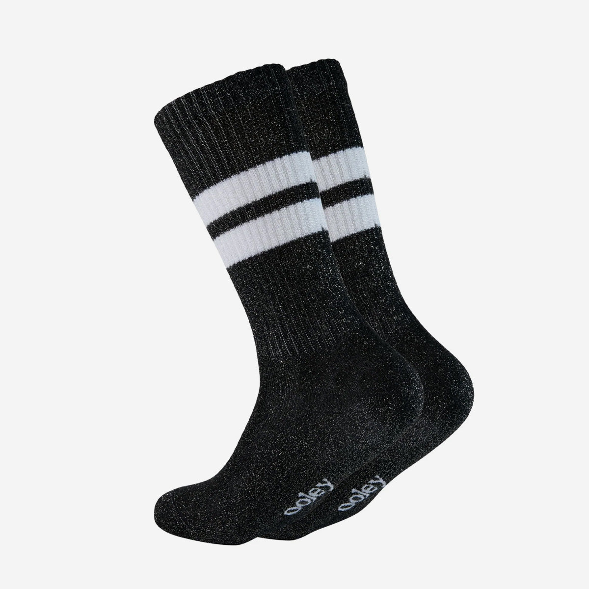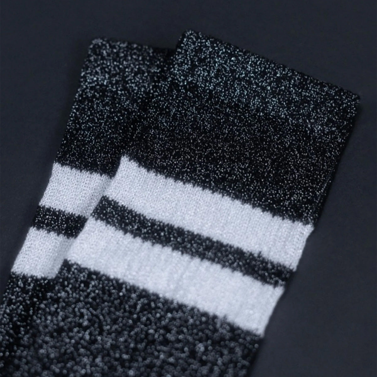 Electra Lungo ist die große Schwester der glänzenden Electra. Länger, eleganter und mit genau dem Funkeln, das ein schlichtes Outfit plötzlich interessanter macht. Das Glitzergarn bleibt weich und kratzt nicht, die TENCEL Lyocell Fasern bringen ein glattes, kühles Tragegefühl. Der höhere Schaft spielt gut mit Sneakern, Loafern oder Röcken und wirkt dabei überraschend selbstverständlich. Entworfen in Bremen, gefertigt in italienischen Familienbetrieben.