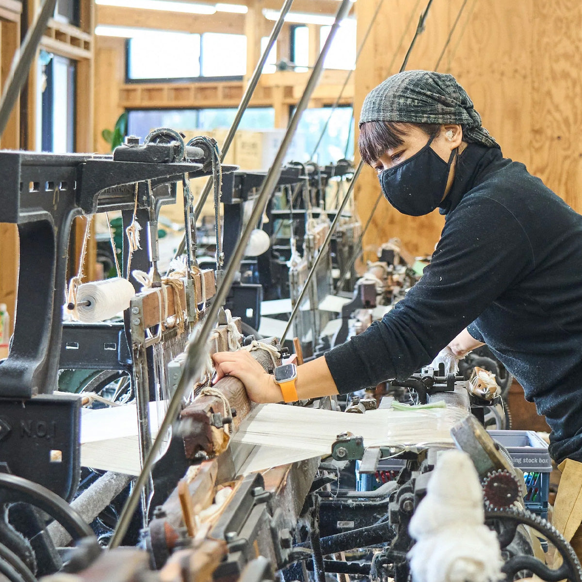 Maekake werden seit der Edo Zeit getragen. Sie sitzen tief an der Hüfte, schützen den Körper und geben beim Arbeiten stabilen Halt. Die Schürzen von Anything entstehen auf alten Shuttle Webstühlen, die seit fast hundert Jahren laufen. Das Gewebe ist dicht und robust, gleichzeitig angenehm weich. Man merkt sofort dass hier Tradition und Funktion noch ganz selbstverständlich zusammengehören.