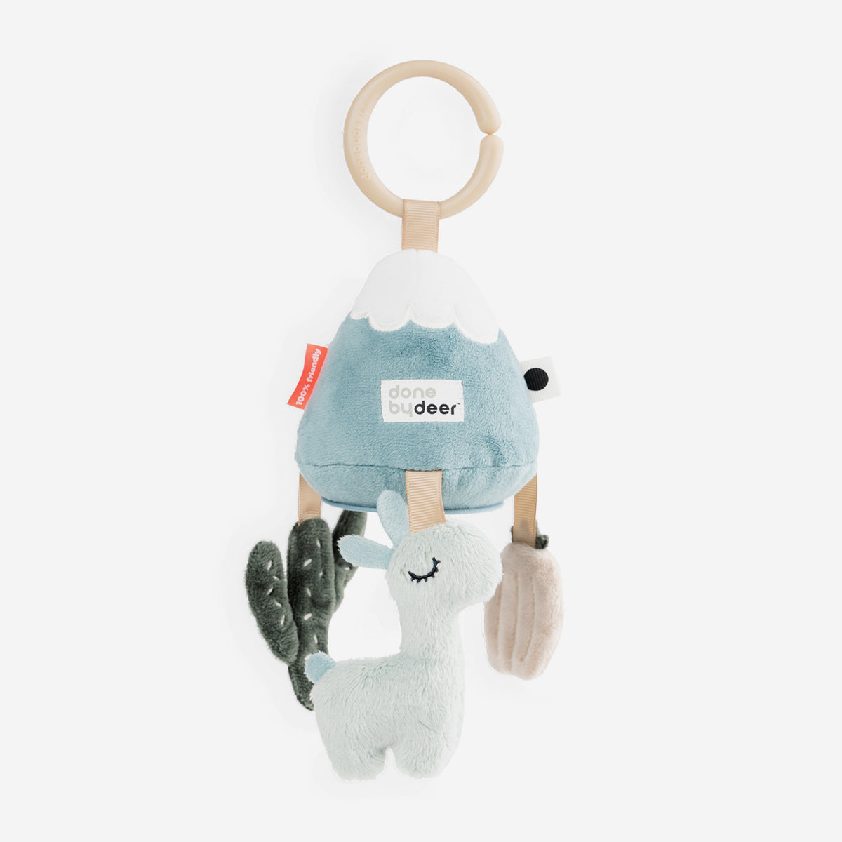 Das sensorische To-Go-Spielzeug Lalee von Done by Deer ist der perfekte Begleiter für unterwegs. Ob am Kinderwagen, Buggy, Autositz, Gitterbett oder auf der Spielmatte – das weiche Spielzeug lässt sich ganz einfach befestigen und sorgt überall für Unterhaltung. Es gibt viel zu entdecken: Der Kaktus knistert, der schneebedeckte Berg rasselt sanft, und Lalee ist einfach nur kuschelig. Im kleinen Spiegel kann dein Baby sich selbst entdecken – ein Lieblingsmoment bei den Kleinsten.