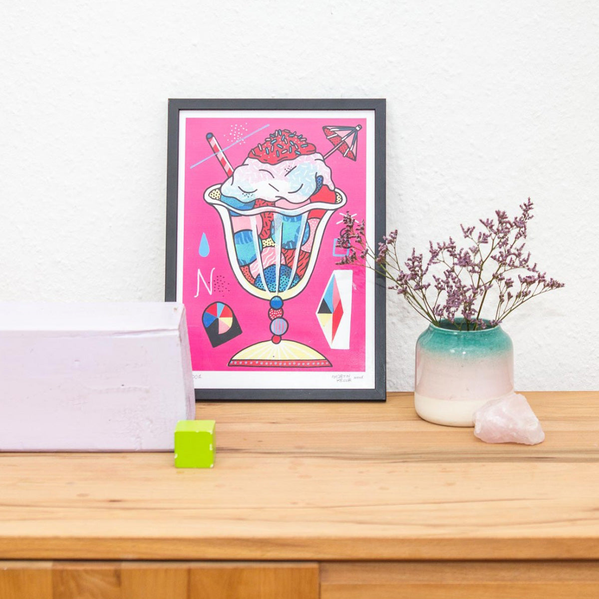 Summer Feeling! Das Eis mit Schirmchen ist ein hochwertiger Tinten-Fineartdruck auf mattem Photo-Rag Papier von Hahnemühle. Das Papier erfüllt höchste Anforderungen an die Alterungsbeständigkeit und ist speziell für die FineArt Anwendung konzipiert. Hält garantiert viel, viel länger als der Eisbecher im Sommer!