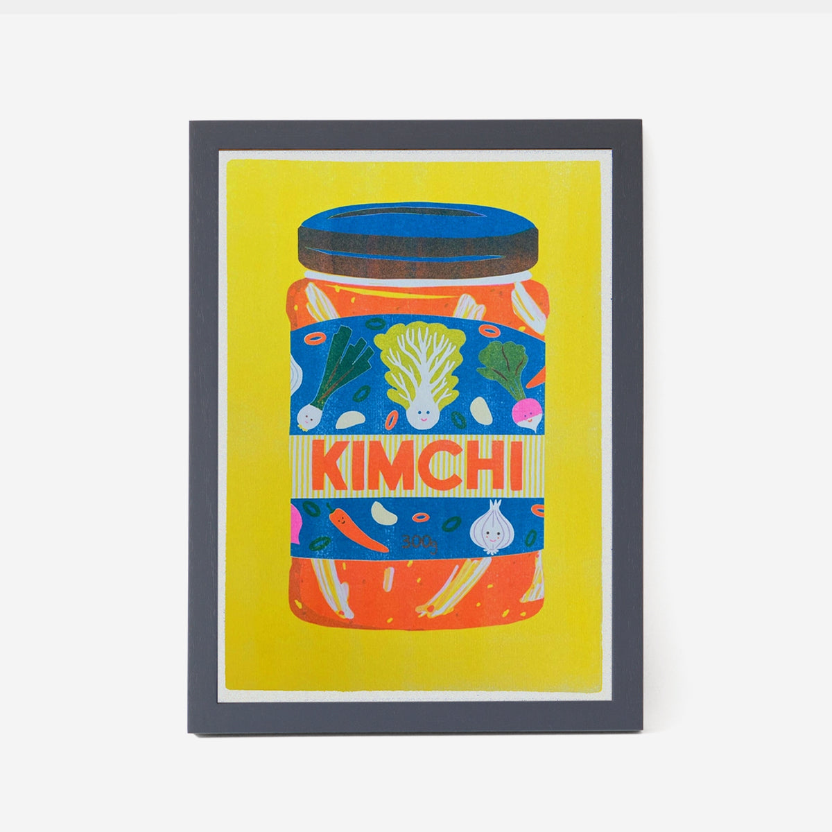 Ein Glas voll Ferment-Glück. Der „Kimchi“ Riso Print von Naomi Wilkinson bringt das koreanische Soulfood als leuchtende Illustration an deine Wand – würzig, lebendig und ein kleines bisschen wild.