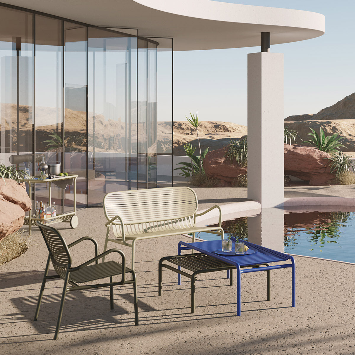 Die vielseitigen Tische, Stühle, Sessel, Hocker und Bänke der Week-End Collection können mühelos in verschiedenen Farbkombinationen zusammengestellt werden, um dem Außenbereich eine persönliche Note zu geben. Erschaffe dir mit der Week-End Collection von Petite Friture eine einladende und stilvolle Outdoor-Oase.