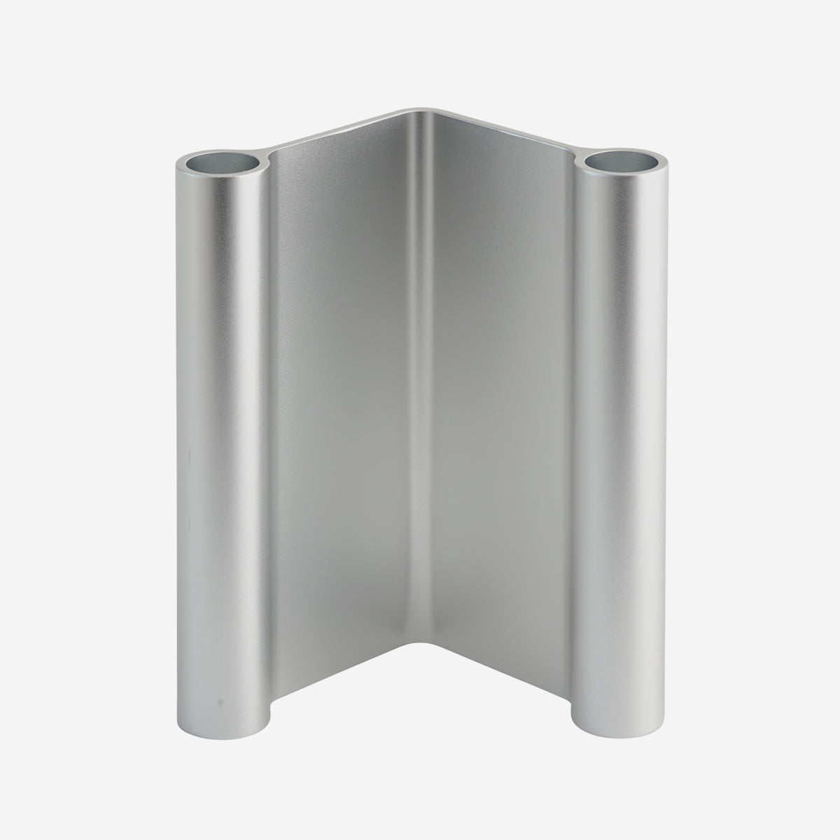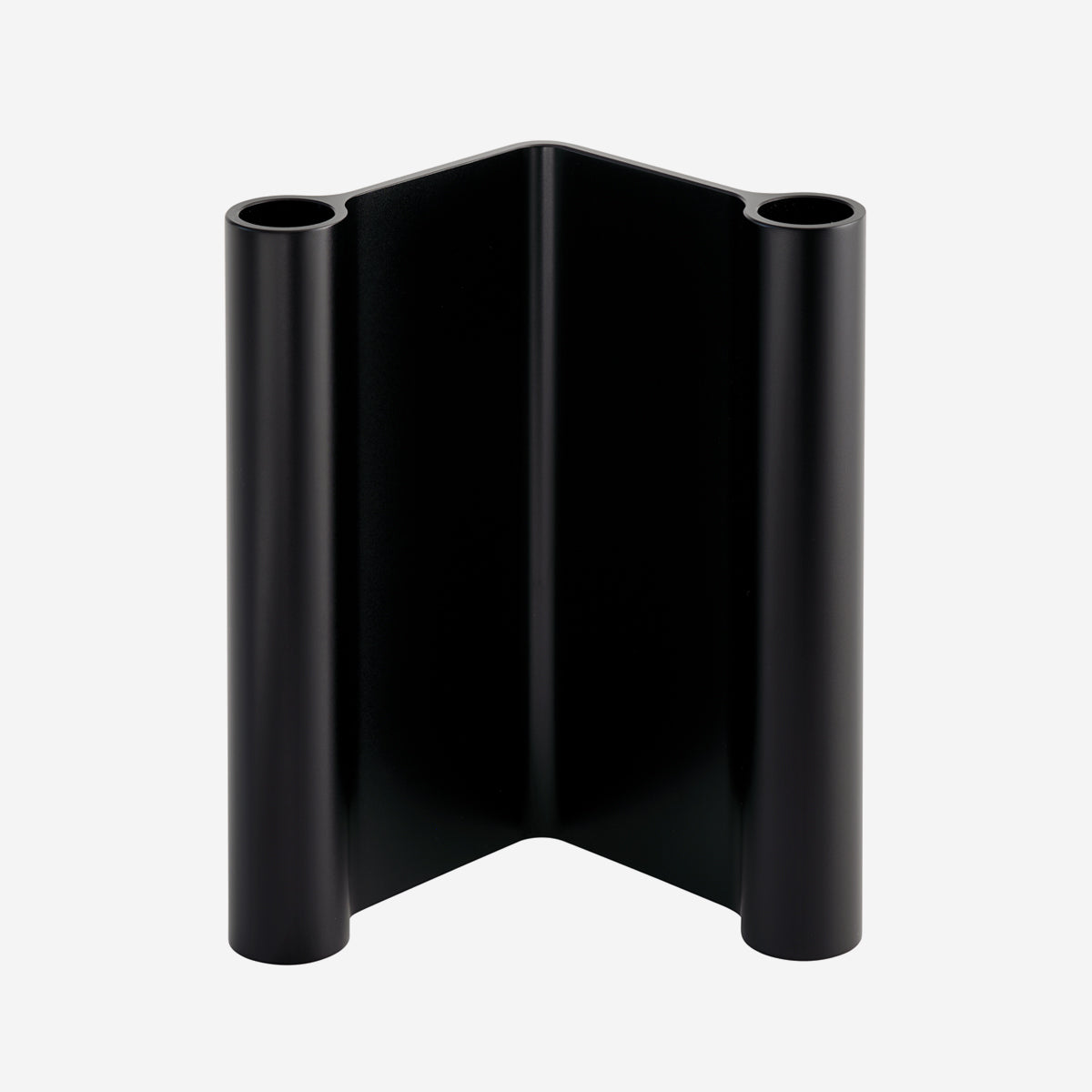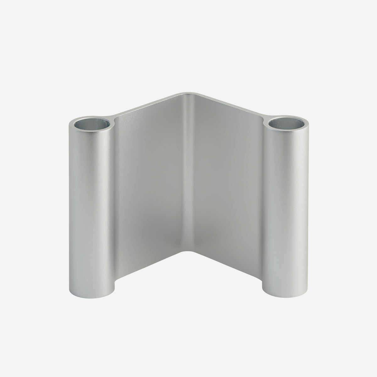 Der Pair Candleholder mag einfach aussehen, ist aber ganz schön durchdacht. Ein einzelnes Stück Aluminium, präzise geformt, gefräst und eloxiert. Die Oberfläche ist matt, die Kanten sind weich, nichts ist laut.