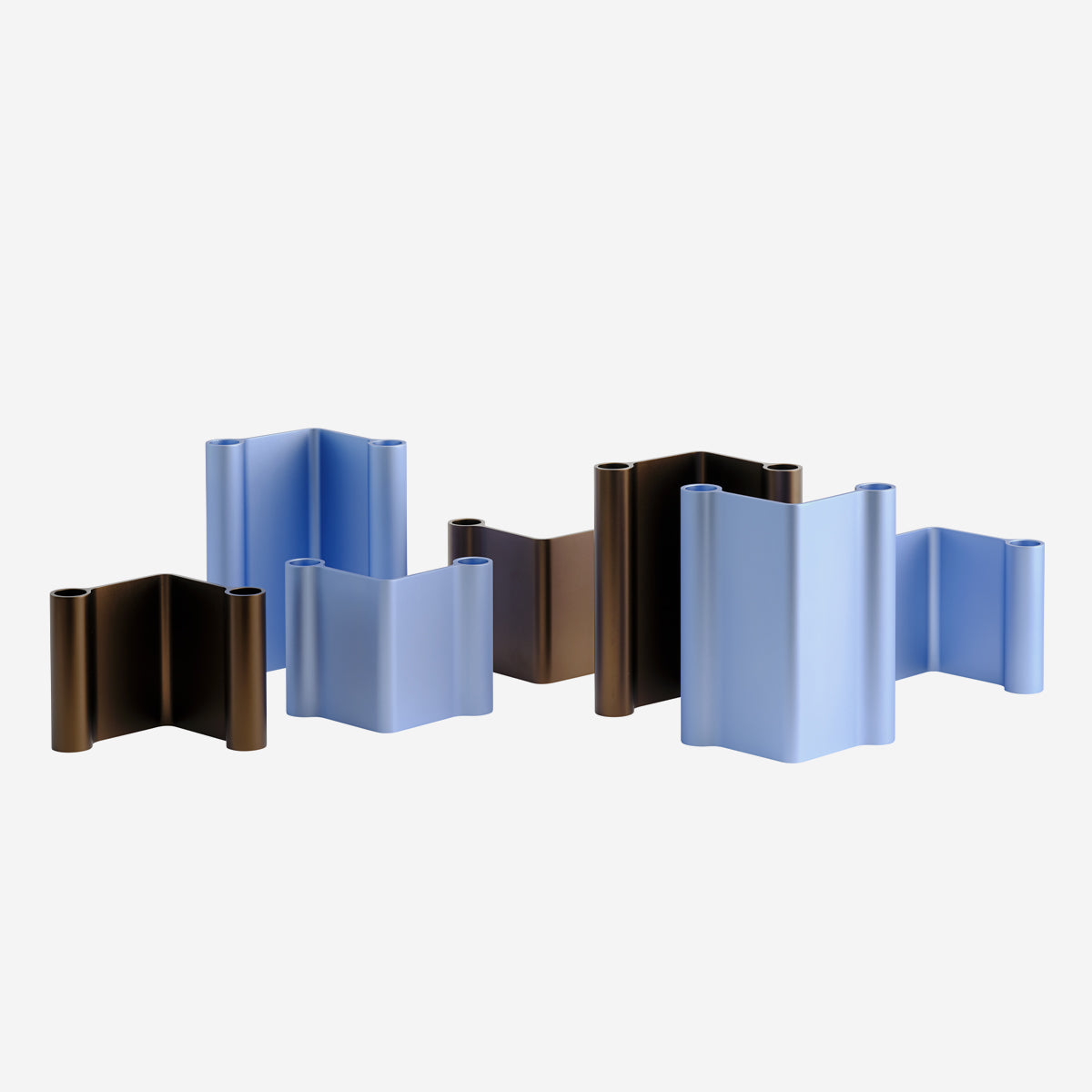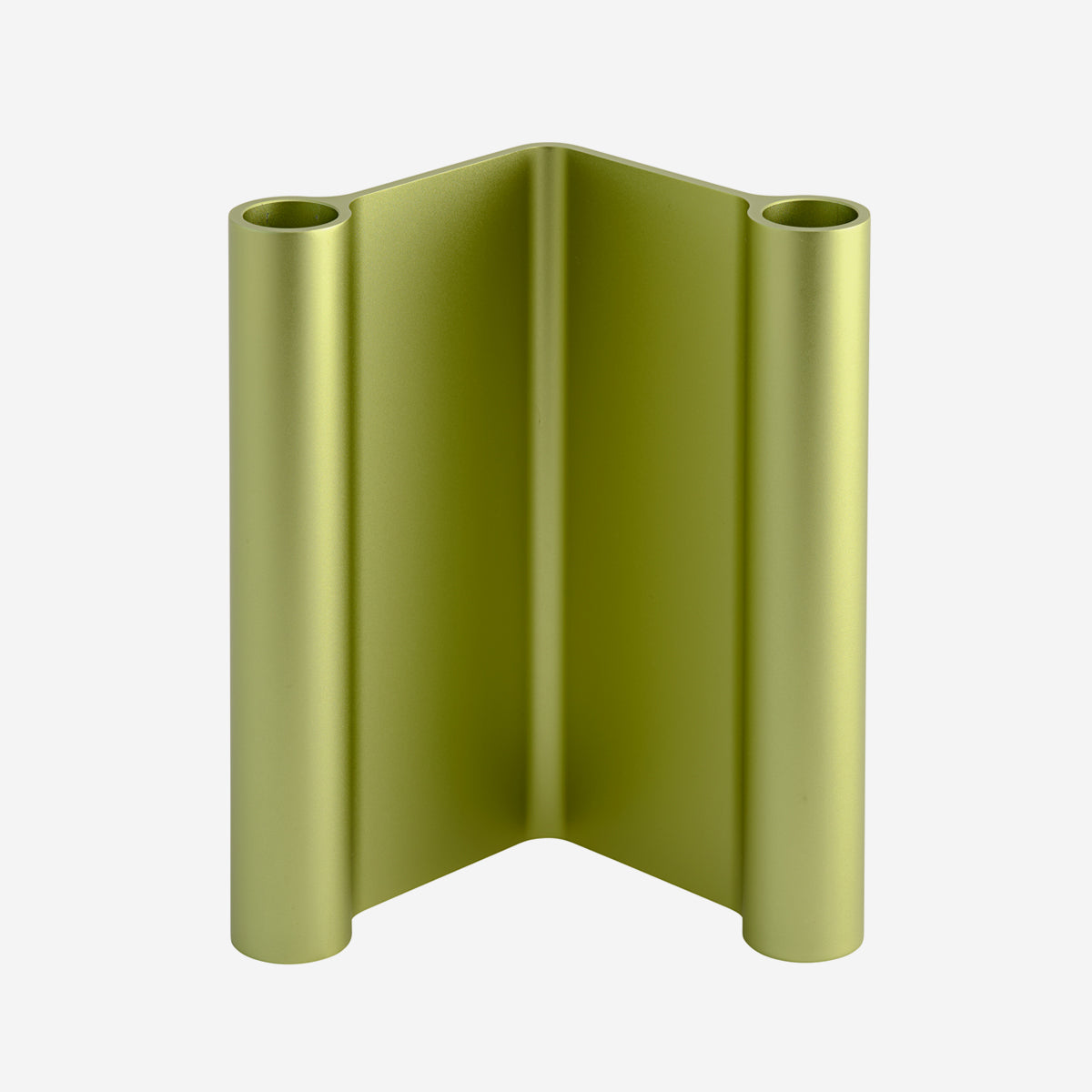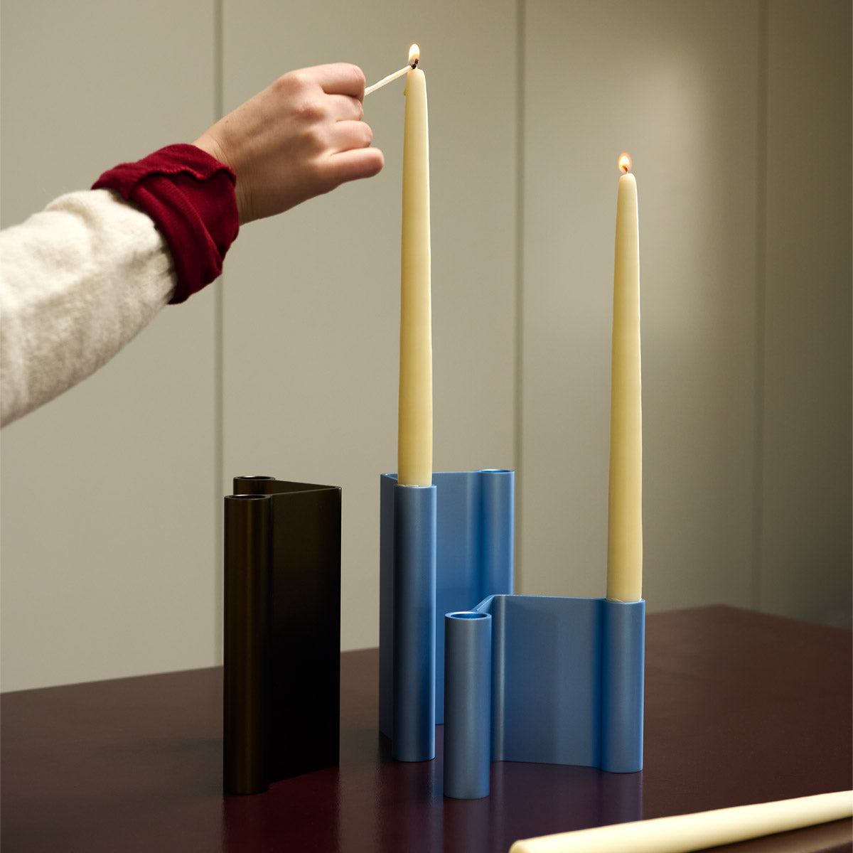 Der Pair Candleholder mag einfach aussehen, ist aber ganz schön durchdacht. Ein einzelnes Stück Aluminium, präzise geformt, gefräst und eloxiert. Die Oberfläche ist matt, die Kanten sind weich, nichts ist laut.