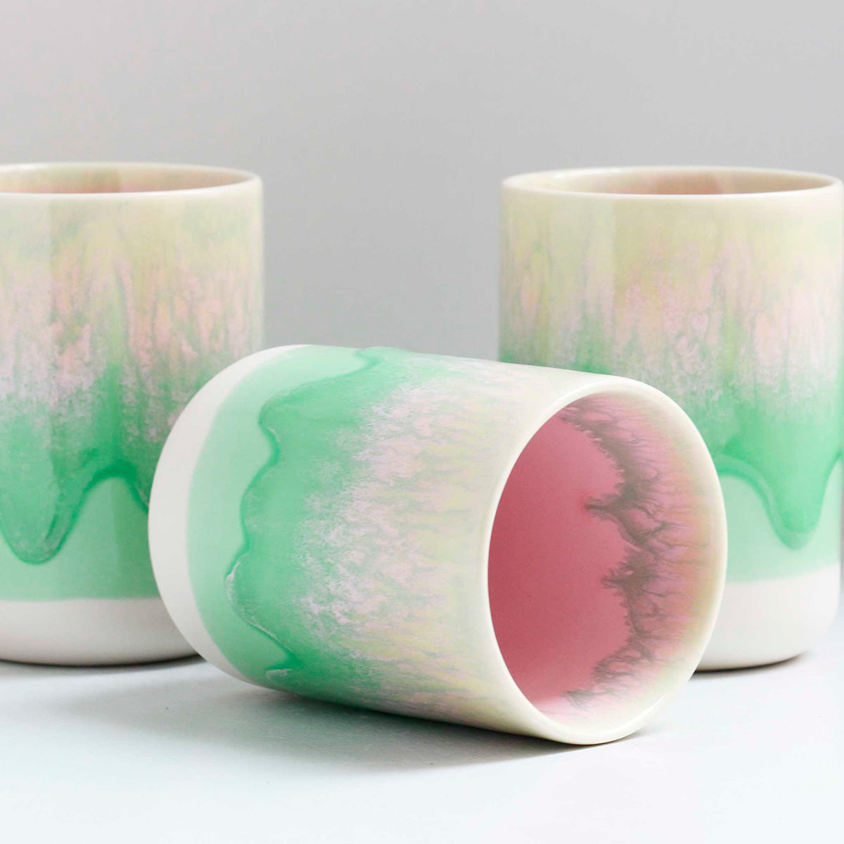 Die Slurp Cup ist eine handgemachte und glasierte Porzellantasse aus der Tokyo Tableware Serie von Studio Arhoj. Sie ist die größere Schwester der Sip Cup, für einen noch größeren Kaffee- oder Teegenuss. Aber auch hier gilt: multi-use. Die Slurp Cups werden neben ihrer Funktion als Trinkbecher auch als Becher für Stifte oder Kosmetikpinsel oder als Gefäß für Lebensmittel oder kleine Vase benutzt.