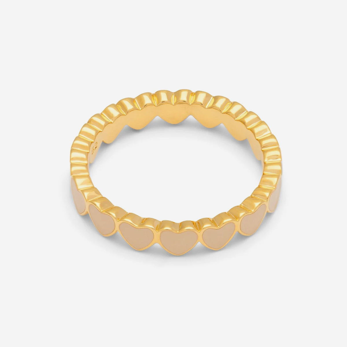 Hearts all around! Der Connected Hearts Ring von LULU Copenhagen legt mit vielen kleinen Herzchen ein verspieltes, aber klar gezeichnetes Muster um den Finger. Weich, aber mehr Struktur als Kitsch.
