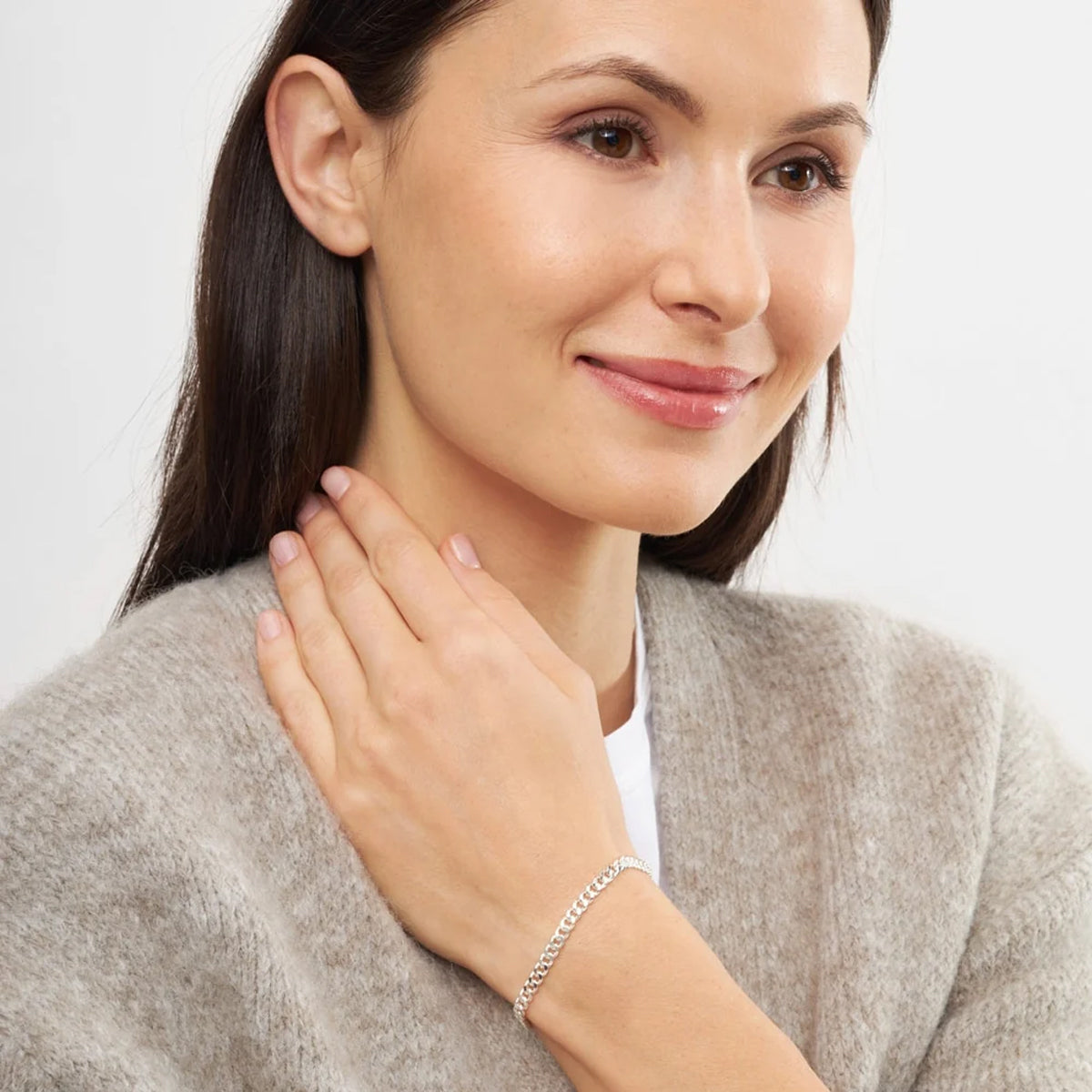 Ein Armband, das man einmal anlegt und dann einfach dranlässt. Das Panzer Bracelet Silver von LULU Copenhagen besteht aus klaren, ruhigen Gliedern und fühlt sich selbstverständlich am Handgelenk an – pur getragen oder gemischt mit Perlen, Emaille und anderen feinen Pieces.