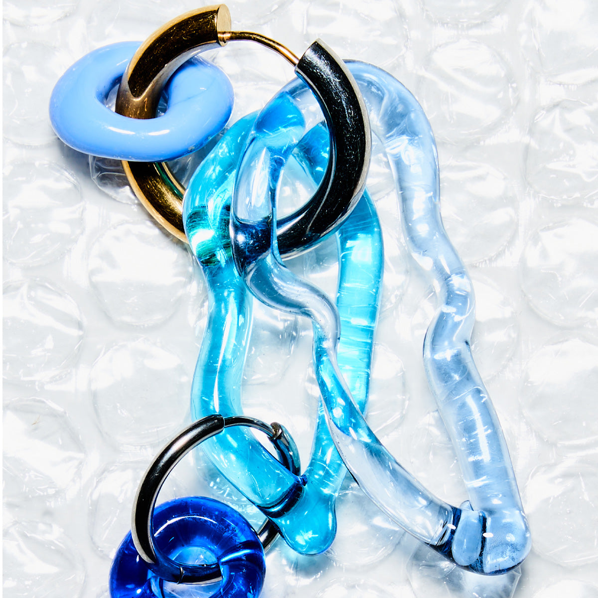 Die 24/7 Hoops von Kitsch Kiosk sind das Schmuckstück, das einfach immer funktioniert. Schlicht, zeitlos und bereit für jedes Experiment. Allein getragen wirken sie clean und elegant, mit den farbigen Kandy-Anhängern werden sie zum Statement. Die Glasanhänger entstehen im Hamburger Studio aus feinem Murano-Glas – jedes Stück wird von Hand geformt und ist ein echtes Unikat.