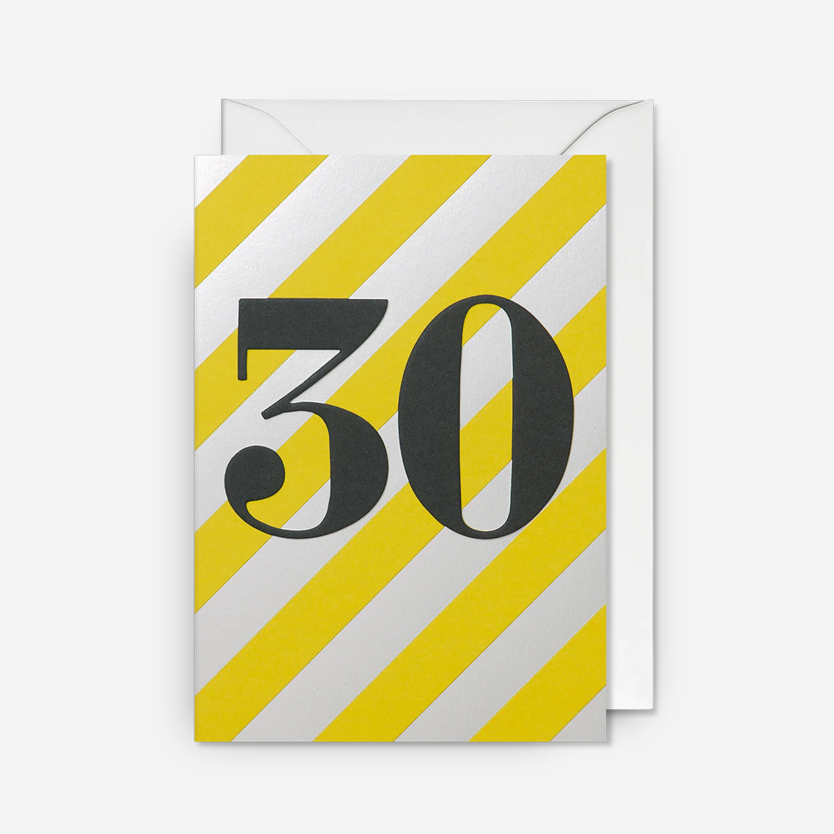 30. Klingt erstmal erwachsen – sieht aber ziemlich frisch aus. Die silbernen Streifen blitzen, das Gelb meint es gut, und die Zahl sagt ganz entspannt: Das Beste kommt jetzt.