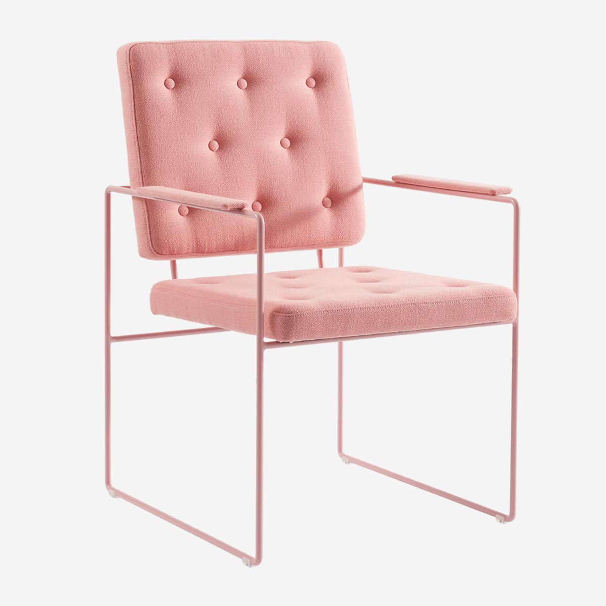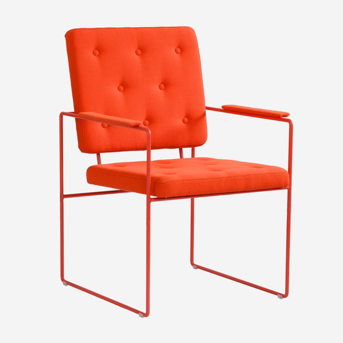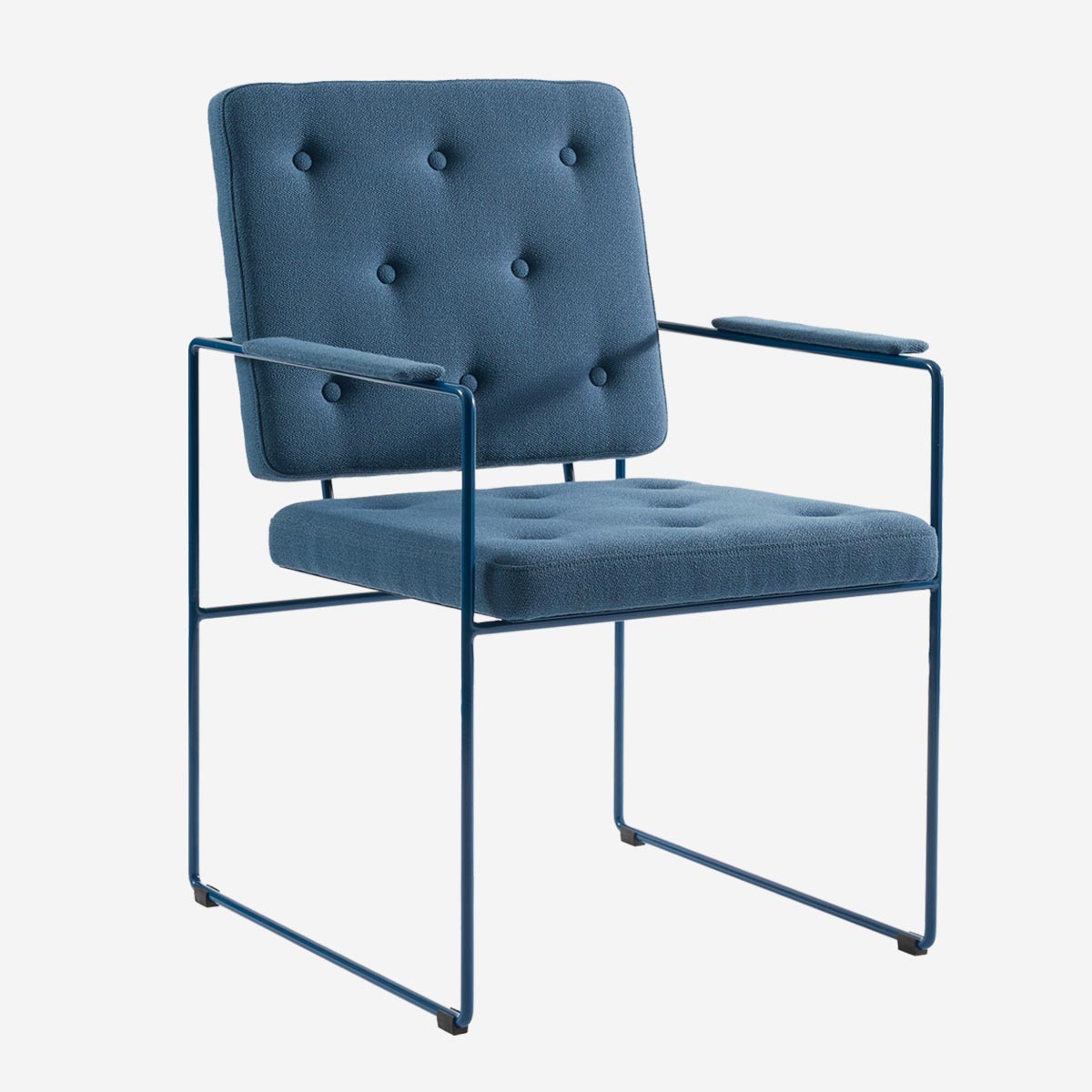 In den 50er Jahren war „having a swell time“ der ultimative Ausdruck des Sich Wohlfühlens. Und genau das wirst du, wenn du in diesem Sessel sitzt. Das filigrane Gestell mutet fast grafisch an und wird aus Rundstahl per Hand gebogen. Die Knopfsteppung der Polster, ebenfalls eine spezialisierte Handarbeit, erinnert uns an britische Polstermöbel – ein perfekter Kontrast zum gradlinigen Gestell.