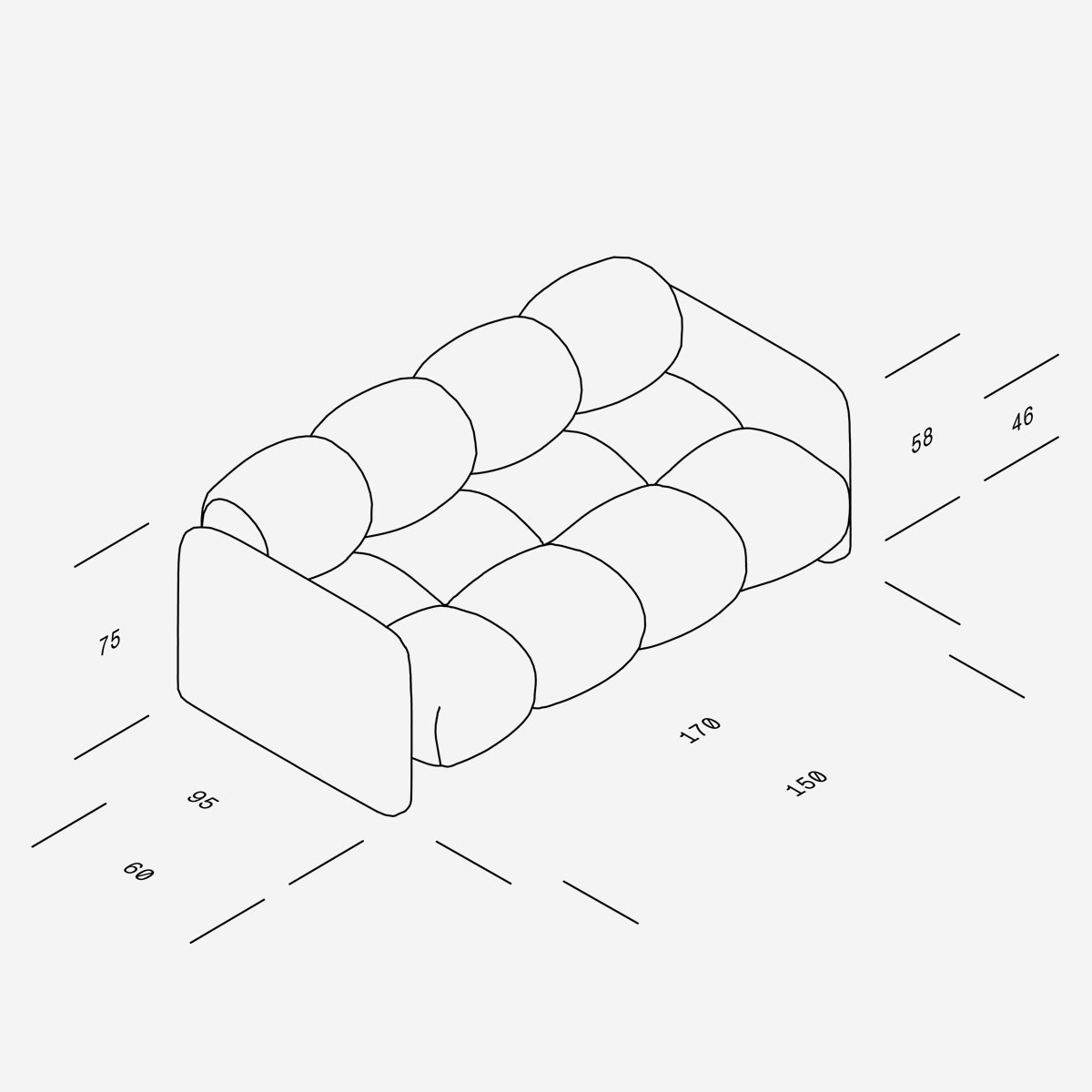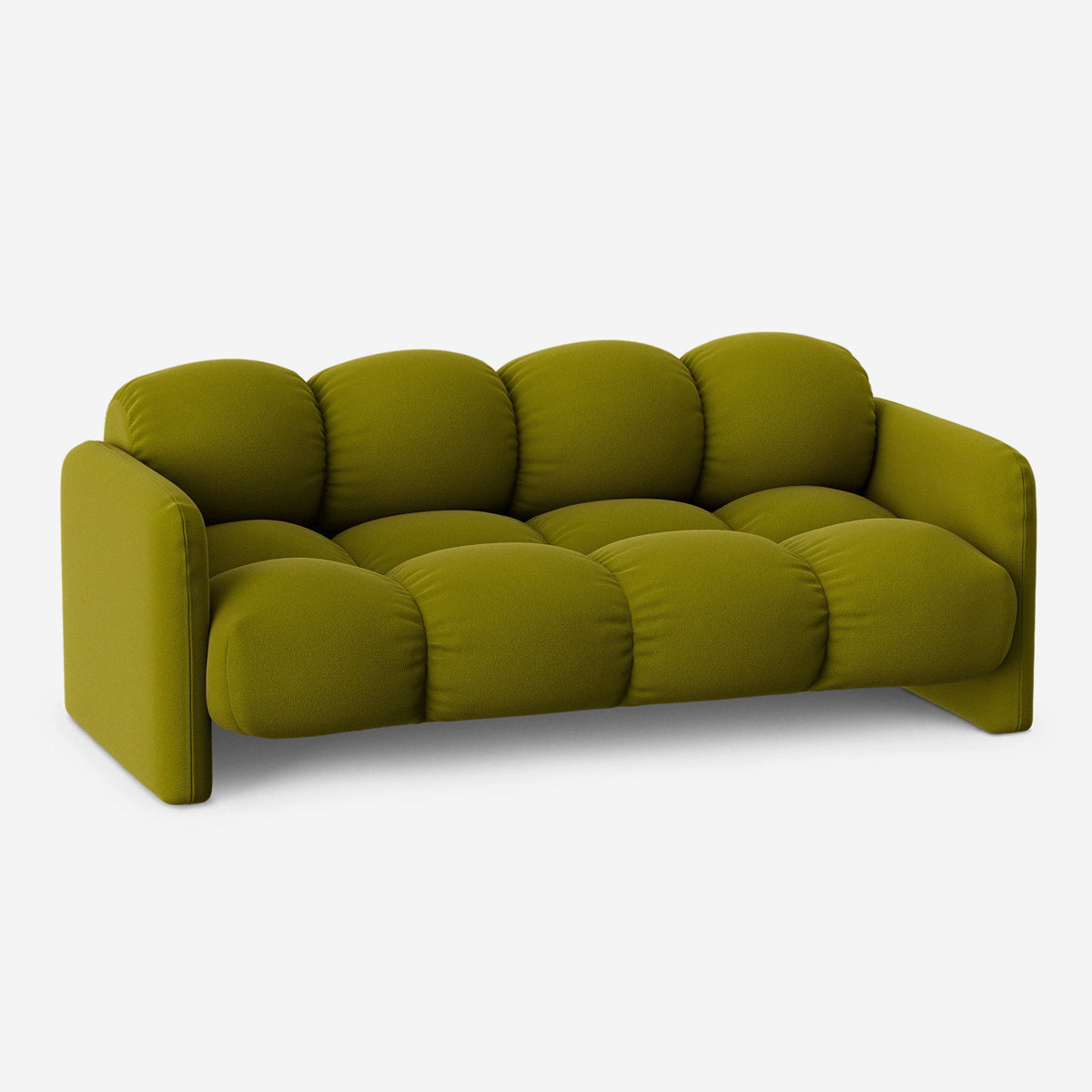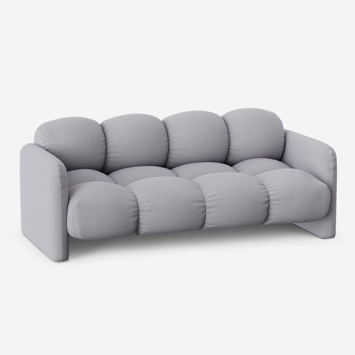 Soft, softer, SANDER UP! Die ultraweiche Polsterung des SANDER UP Sofas fühlt sich an wie ein riesiges Kissen aus flauschigen Marshmallows. Mit handwerklicher Leidenschaft gepolstert, findet die Bombierung in den Armlehnen eine klare Kontur und hebt das Design vom Boden „UP“. Gestalterische Freude und Referenzen zur Postmoderne sind im Entwurf spürbar.