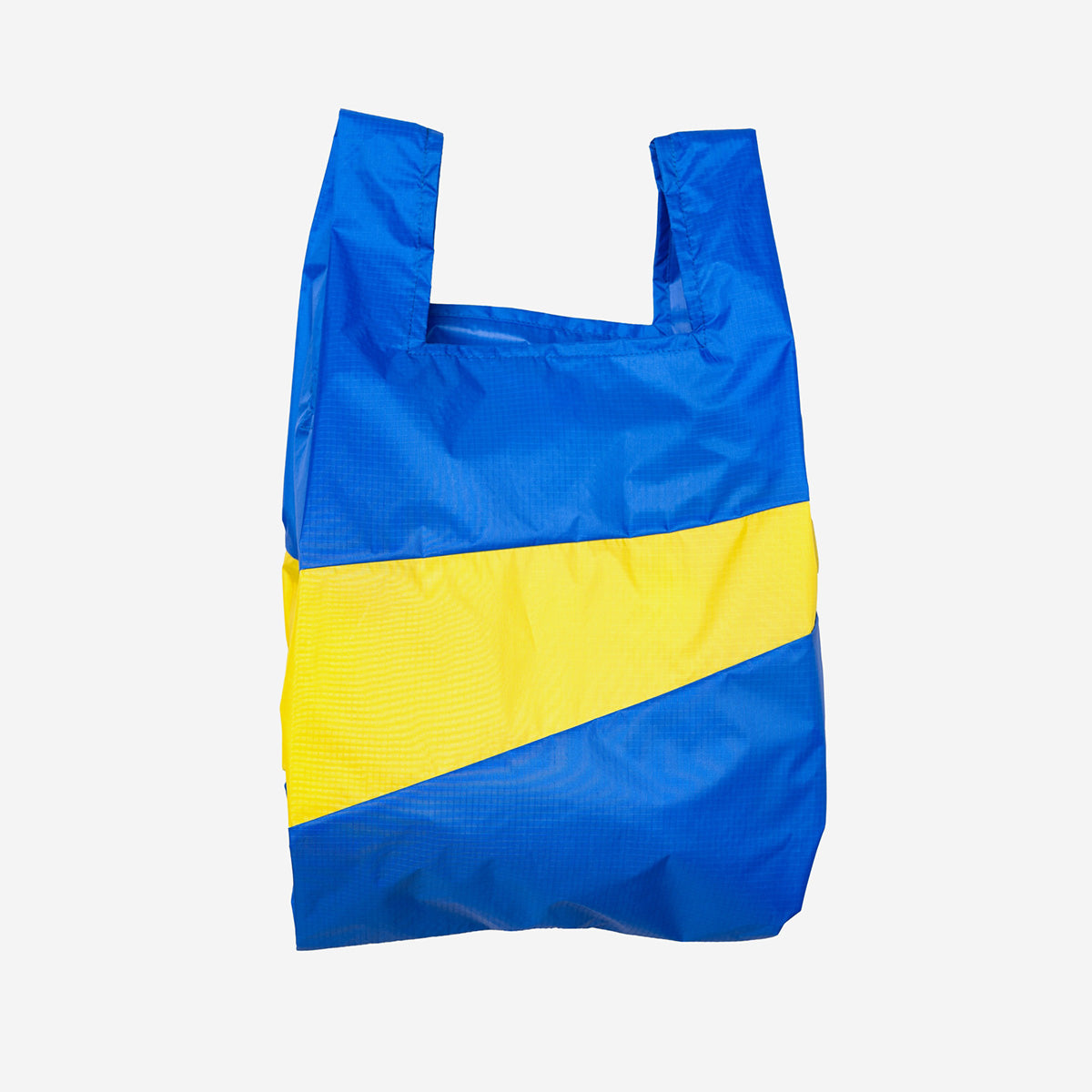 The New Shopping Bag von Susan Bijl ersetzt die Plastiktüten, die du (früher zumindest) in Geschäften und auf Märkten bekommen hast. Du kannst sie für praktisch alles verwenden. Das Material ist hochbelastbar: The New Shopping Bag kann über 20kg aushalten. Mit dem ikonischen Blockstreifen ist sie ein toller Hingucker. Wähle deine Lieblingsfarbe aus unzähligen Kombinationen!