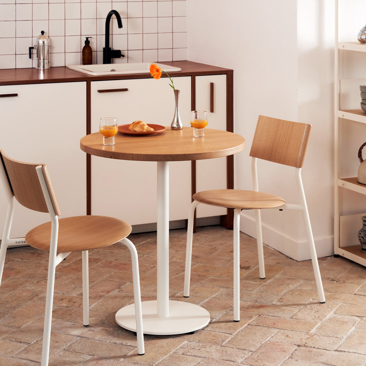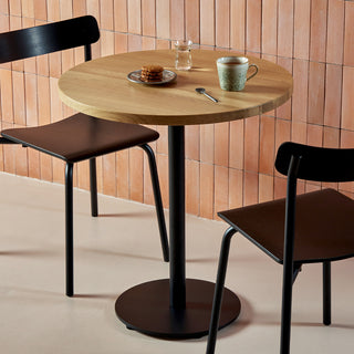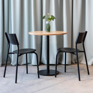 Der Bistrotisch MOKA von Tiptoe – puristisch und funktional. Dieser Tisch ist perfekt für kleine Räume und sorgt für eine gemütliche Atmosphäre, sei es in der Küche, im Esszimmer oder als charmantes Extra in deinem Café oder Restaurant. Die Kombination aus massiver Eiche und pulverbeschichtetem Stahl schafft einen Tisch, der sowohl robust als auch ästhetisch ist – ganz im Sinne des minimalistischen Designs.