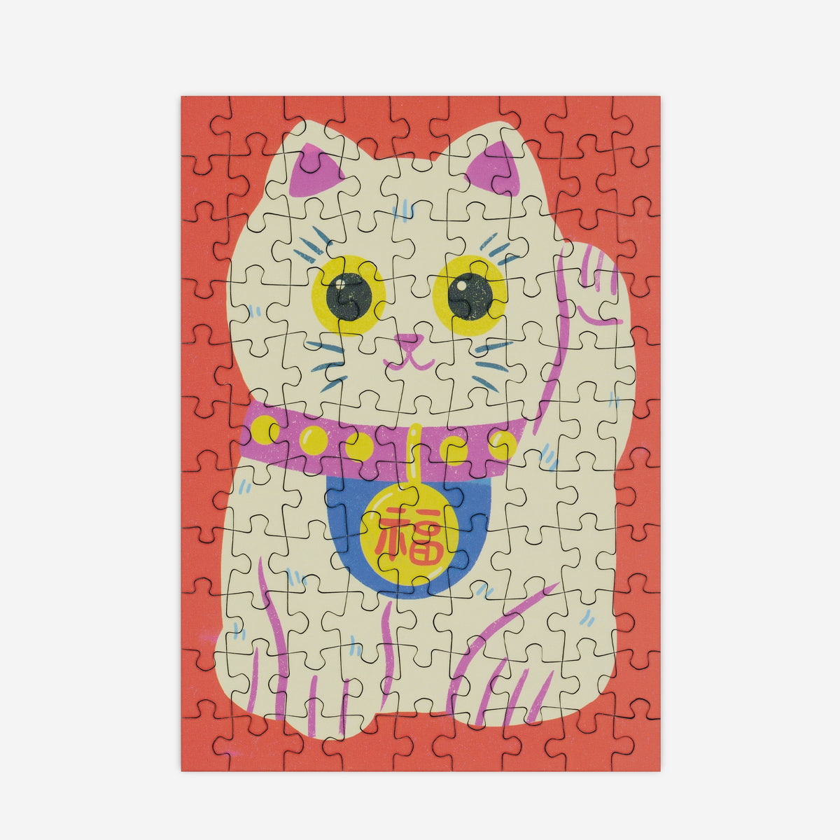 99 Teile Glück zum Zusammenlegen. Die winkende Lucky Cat bringt gute Vibes auf den Tisch und macht aus einer kurzen Pause ein kleines Ritual. Schnell gepuzzelt, schön anzusehen und genau richtig, wenn man zwischendurch etwas Ordnung ins Chaos bringen möchte. Das Motiv stammt von der britischen Illustratorin Naomi Wilkinson und funktioniert ganz ohne Food Kontext, aber mit umso mehr Charme.