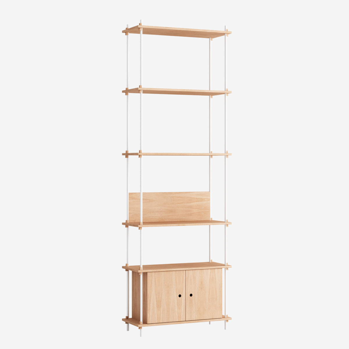 Mit dem MOEBE Shelving System hast du die volle Freiheit, dein eigenes, individuelles Regal zu bauen. Baue es so hoch wie du willst, so breit wie du es brauchst, baue es um Ecken herum oder überbrücke sogar verschiedene Ebenen. Das Shelving System kann als Raumteiler frei stehen oder klassisch an einer Wand platziert werden.