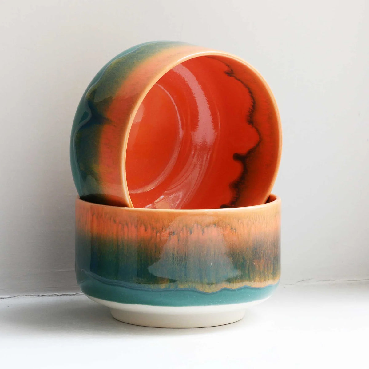 Die Munch Bowl ist eine Schale mit einem breiten flachen Fuß, der sicher auf dem Tisch ruht. Sie ist Teil der Tokyo Tableware Series von Studio Arhoj und wird in einer Vielzahl aufregender Glasuren in allen Farben gemacht. Die Größe der Schale ist perfekt für Suppen oder Pasta, aber auch morgens für dein Müsli oder deine Oats.