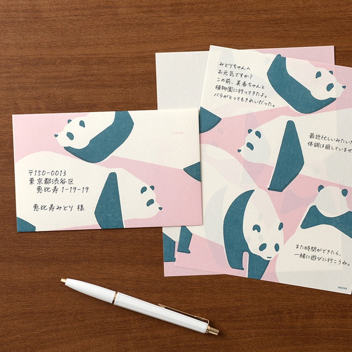Passende Umschläge gibt es auch, falls der Panda mit auf die Reise soll.