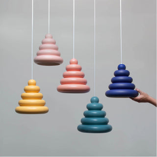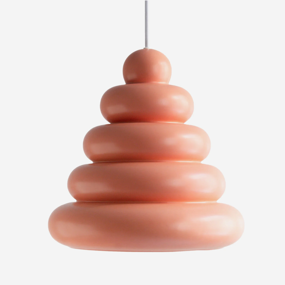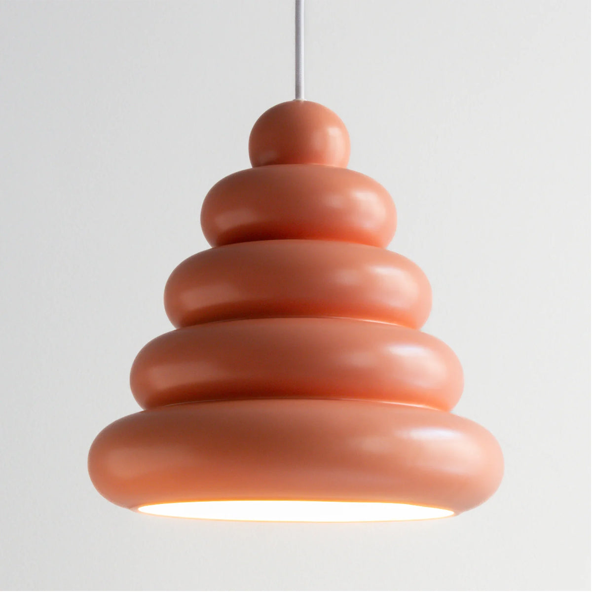 Die Bubble Lamp von Studio Arhoj verbindet charmantes Retro-Design mit handwerklicher Perfektion. Inspiriert von klassischen Wackelpudding-Formen, Googie-Architektur und dänischen Lagkager (Schichttorten) entsteht ein einzigartiger Lampenschirm aus handgegossenem Steinzeug. Jede Lampe wird glasiert und gebrannt, wodurch sie eine lebendige, glänzende Oberfläche erhält.