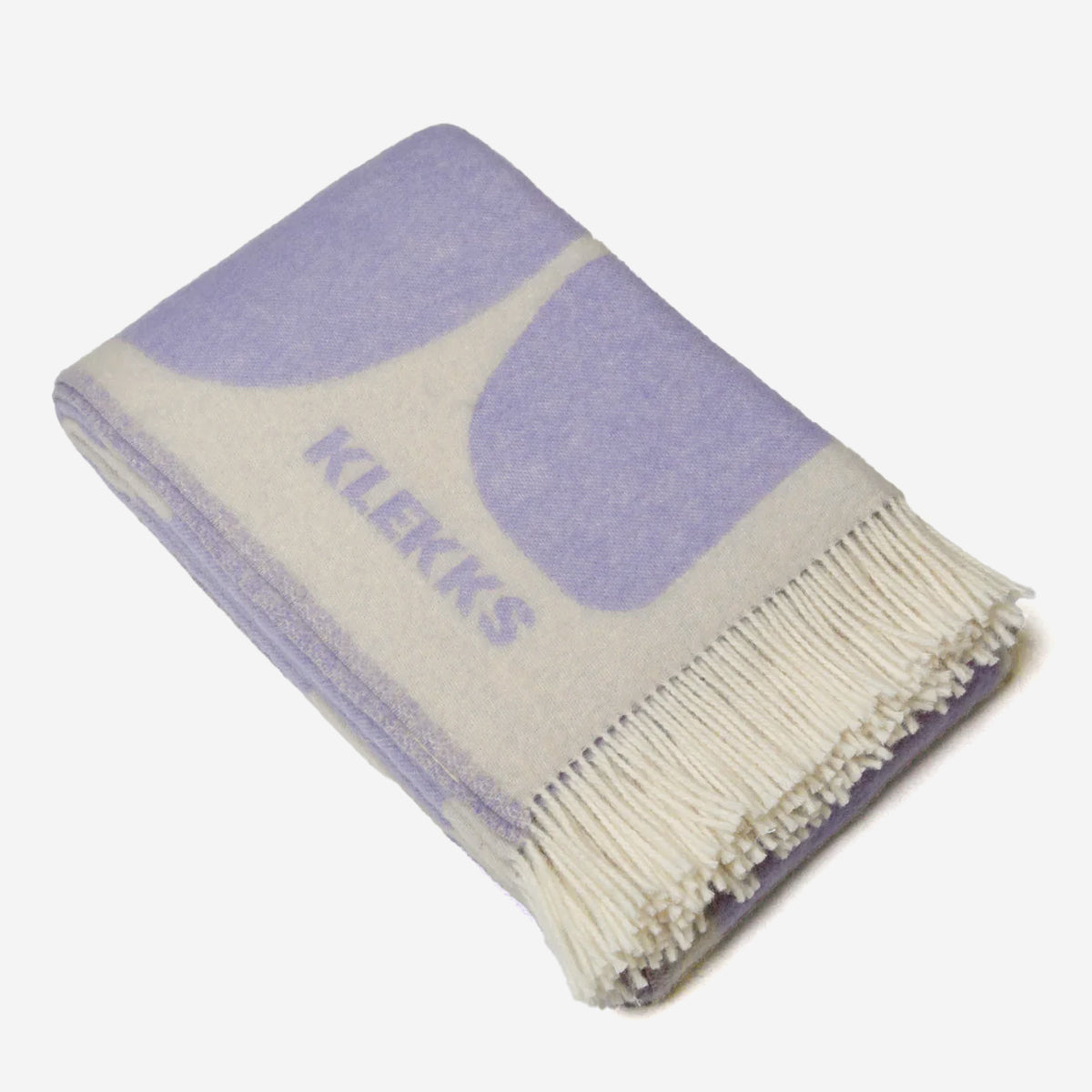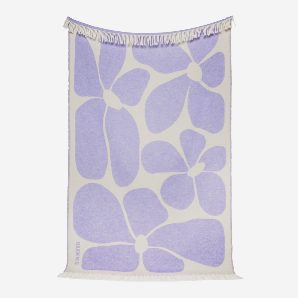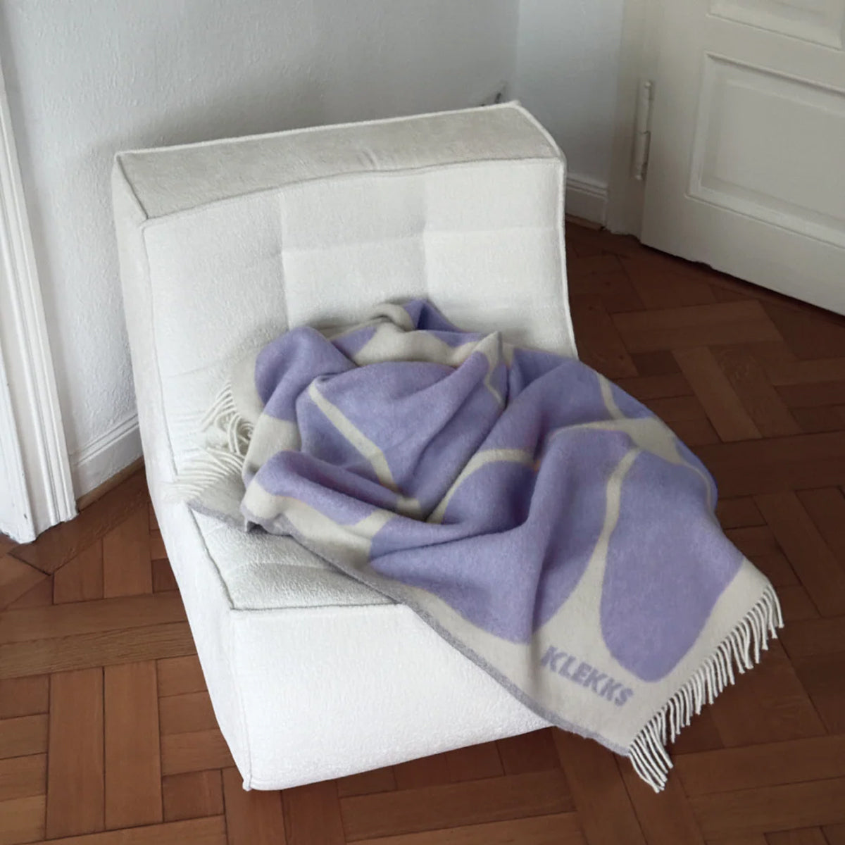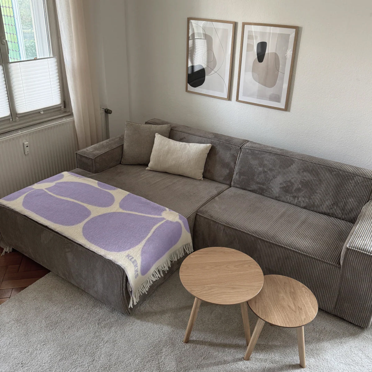 Blumen für das Sofa: die Klekks No. 32 Flieder Wolldecke bringt Creme und Lila zusammen und macht es sofort ein bisschen gemütlicher im Raum.