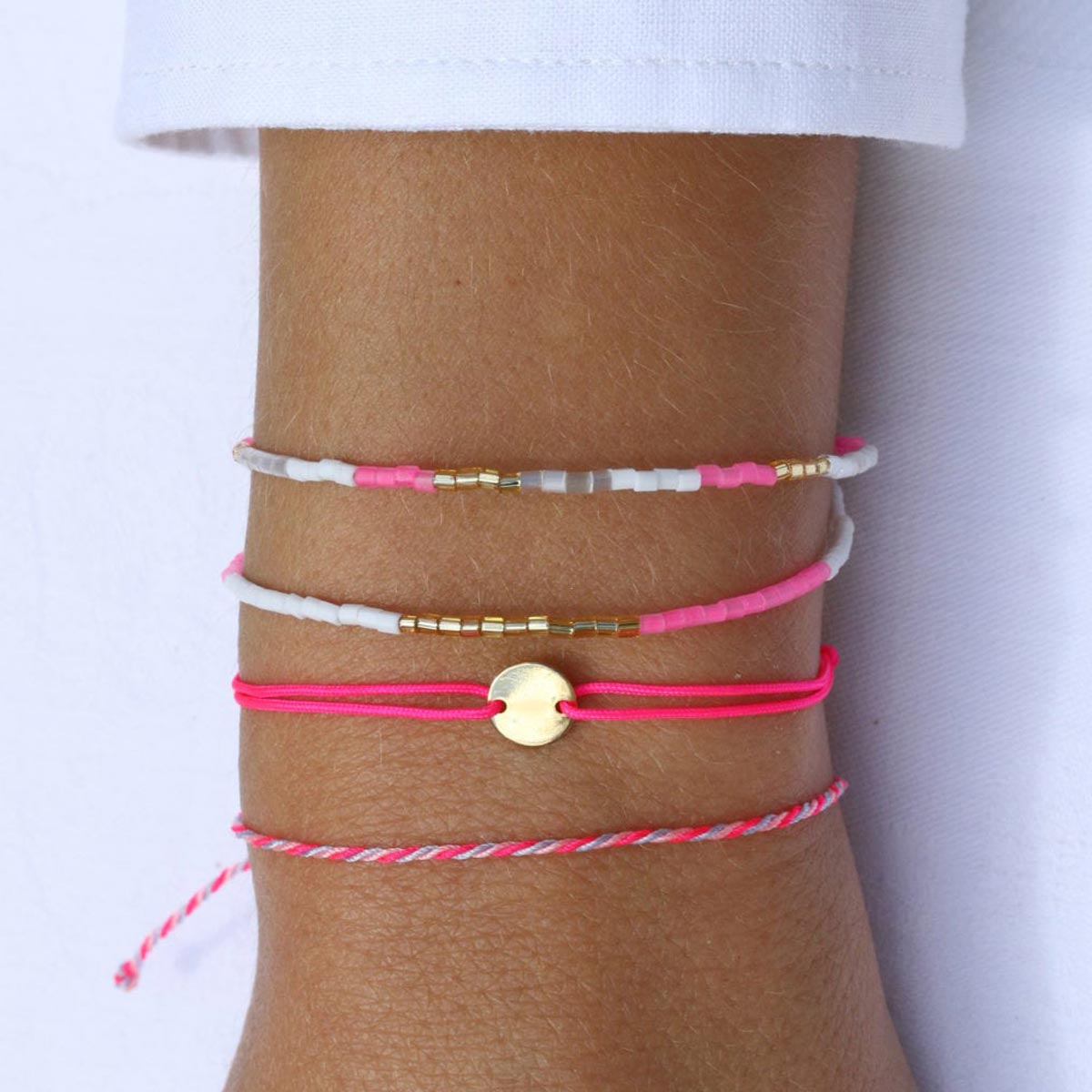 Dolce Vita! The bracelets from the Amalfi series by Blush Indigo take you on a trip to the Italian coast of Sorrento and Positano. With matte pearls in white, turquoise, frosted pink, neon coral, ocean green and all the colors to match your daily gelato. Pretty colorful pearls, peppered with gold accents.