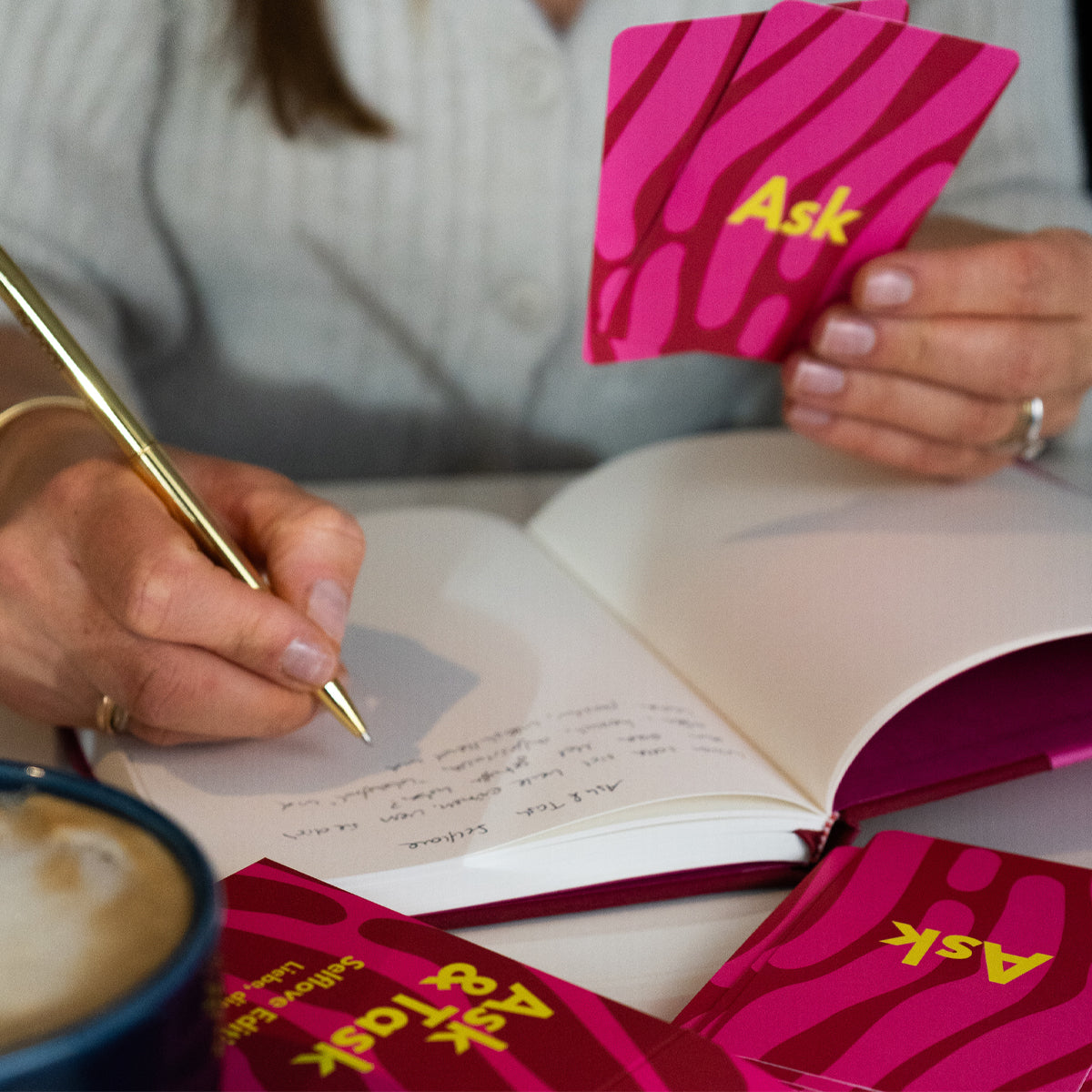 Das Konzept - Ask & Task: Reflexion ist der erste Schritt zur Veränderung. Sich selbst Fragen zu stellen und darüber nachzudenken, hilft, Klarheit zu gewinnen. Doch echte Veränderung passiert erst, wenn wir unsere Gedanken in Taten umsetzen. Genau deshalb haben wir ein Kartenset entwickelt, das Fragen mit Aufgaben kombiniert.