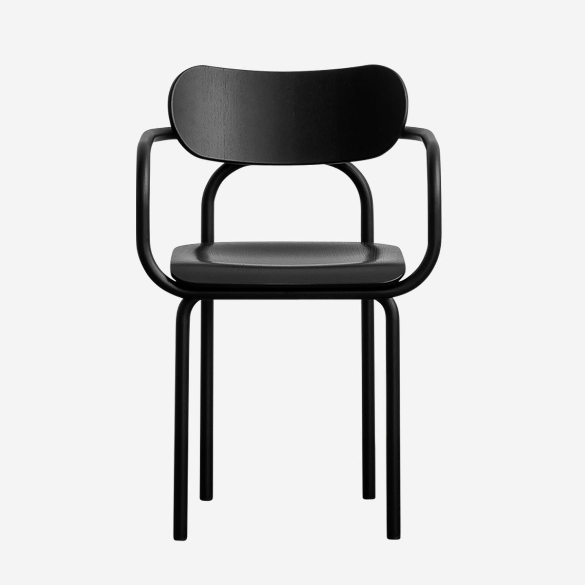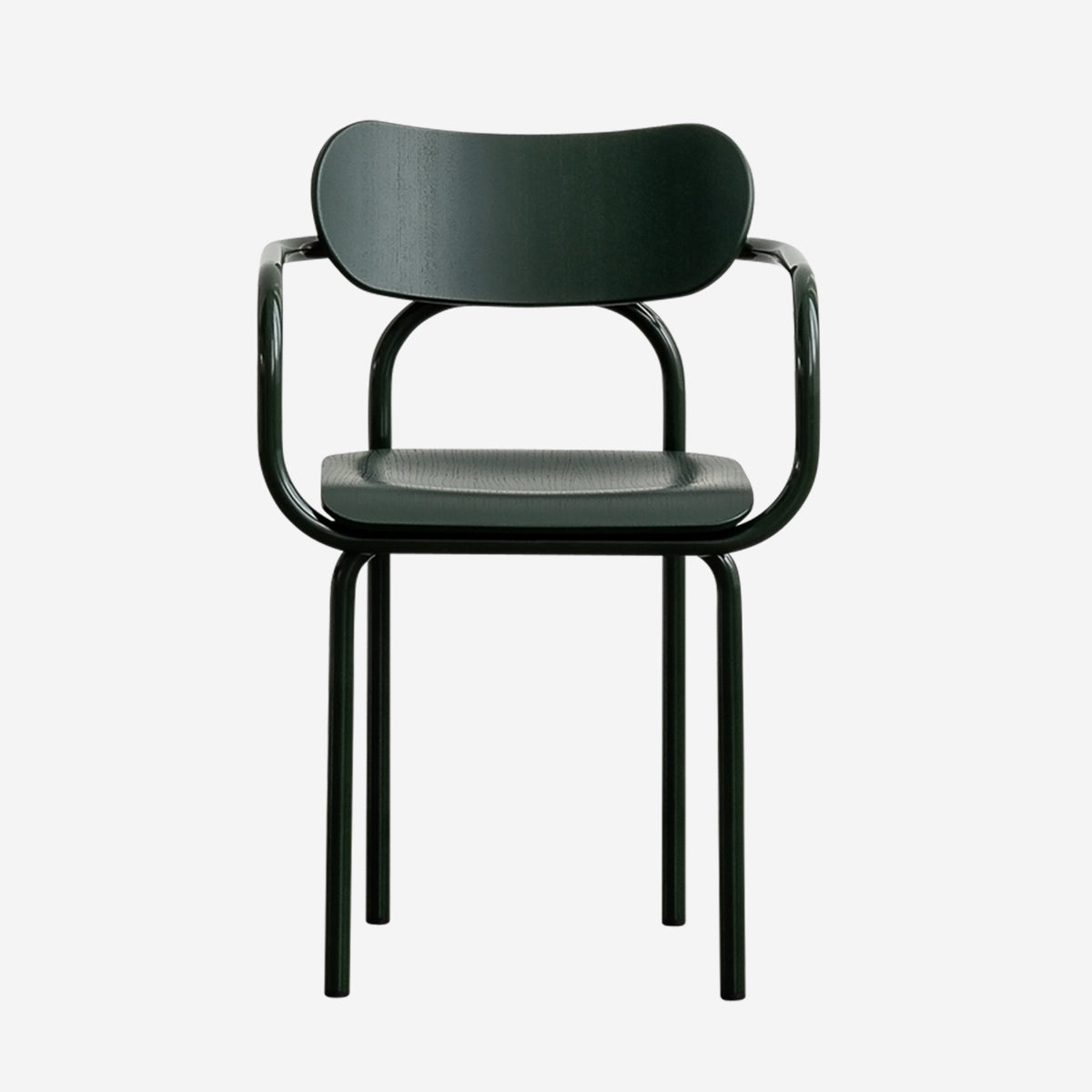 DOUBLE U wirkt wie eine leichte Umarmung. Die Silhouette ist voller Schwung, Dynamik und spielerischer Leichtigkeit; die monochrome Farbgebung lässt den Stuhl wie aus einem Guss wirken. Die Sitzschale und die Rückenlehne werden aus gepresstem, mit Esche furniertem Buchenholz gefertigt. Das Stammholz wird aus Forsten bezogen, die seit mehr als 300 Jahren nachhaltig wirtschaften und eine Holzsorte mit einzigartigen Qualitäten liefern. Buche zeichnet sich durch enorme Zugkraft und dauerhafte Flexibilität aus – und ist damit ideal für diese ergonomisch gebogenen Sitz- und Rückenschalen.