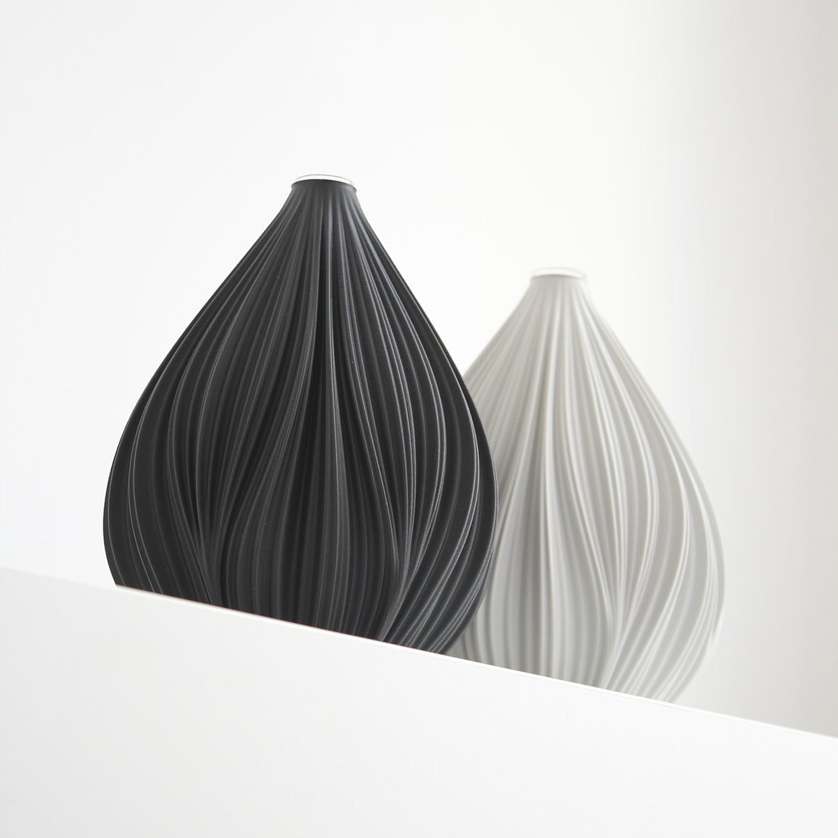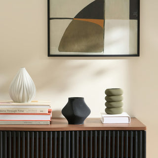 The vases by Sheyn. from Vienna with their exciting textures and balanced, interesting shapes are produced using 3D printing. The vases are fitted with a precisely fitting, removable glass inside into which you can pour the water. Another plus: the corn-based material used is sustainable and recyclable.
