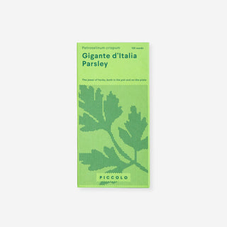 Parsley Gigante d'Italia is a deep green, broad-leaved plant with strong stems, a fresh, slightly spicy aroma, and a tangy-sweet flavor. Parsley is also known as Sellerina because its long stems can be eaten like celery. It is a particularly high-yielding variety, well-suited for fall cultivation due to its cold resistance.