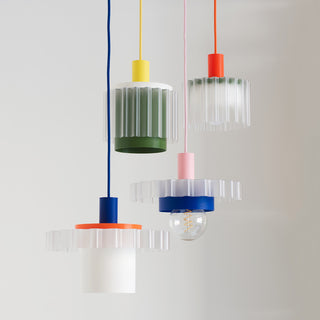 Die Leuchten-Kollektion Gigi der französischen Designer warren + laetitia besteht aus einer Reihe farbenfroher modularer Pendelleuchten, die immer aus drei austauschbaren Teilen zusammengesetzt sind.