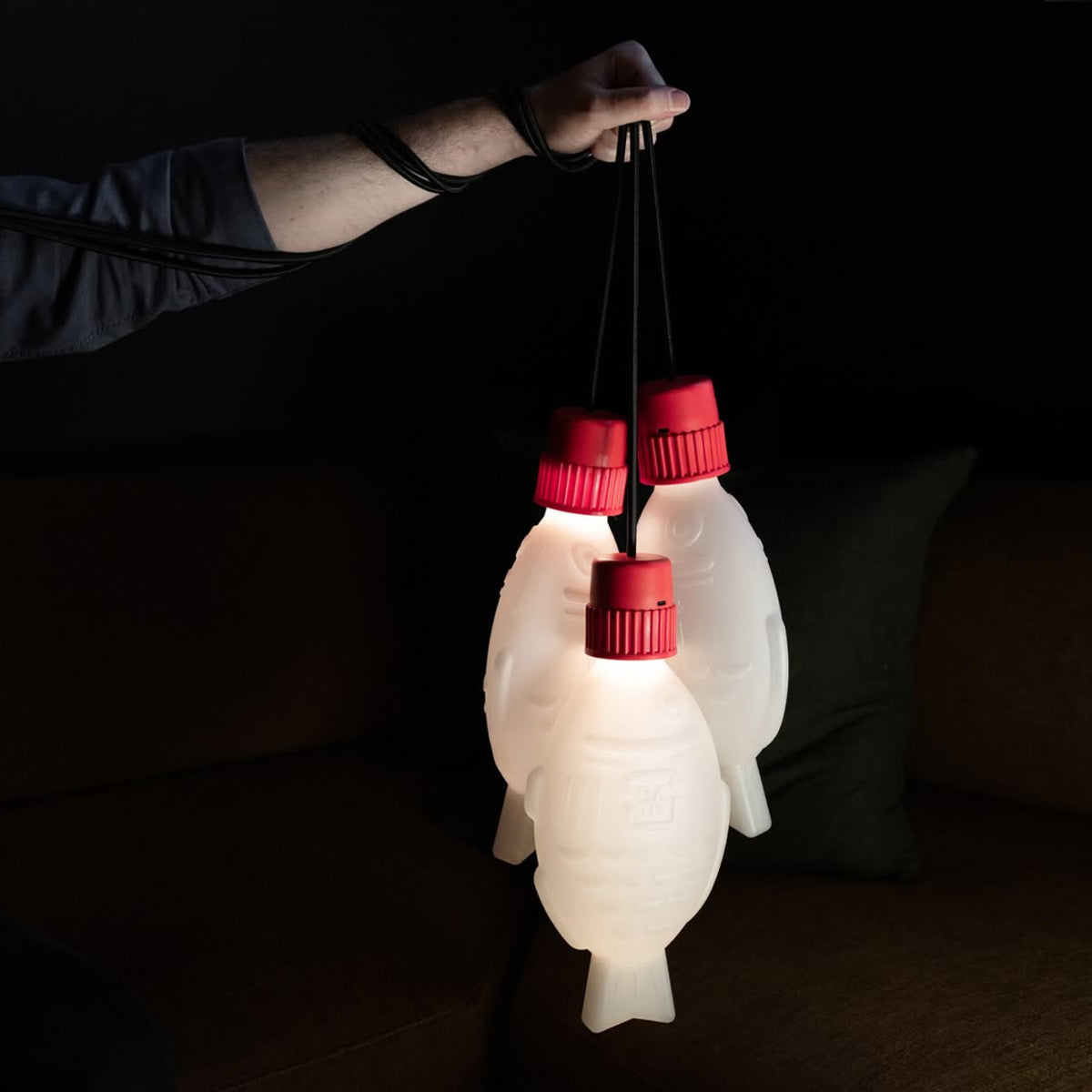Die verspielte LED-Leuchte in Form eines Soja-Fisches ist per Touch Control dimmbar. Du kannst sie am 2m langen Kabel als Pendelleuchte aufhängen. Sie ist ab Werk mit einem EU-Stecker ausgestattet, so dass man sie einfach an einer Steckdose anschließen kann. Um die Leuchte direkt am Deckenanschluss zu installieren, kann sie umgebaut werden, in dem der Stecker entfernt wird. (Beachte: das darf aus Gründen der Sicherheit nur ein professioneller Fachmann, wie ein Elektriker vornehmen!)