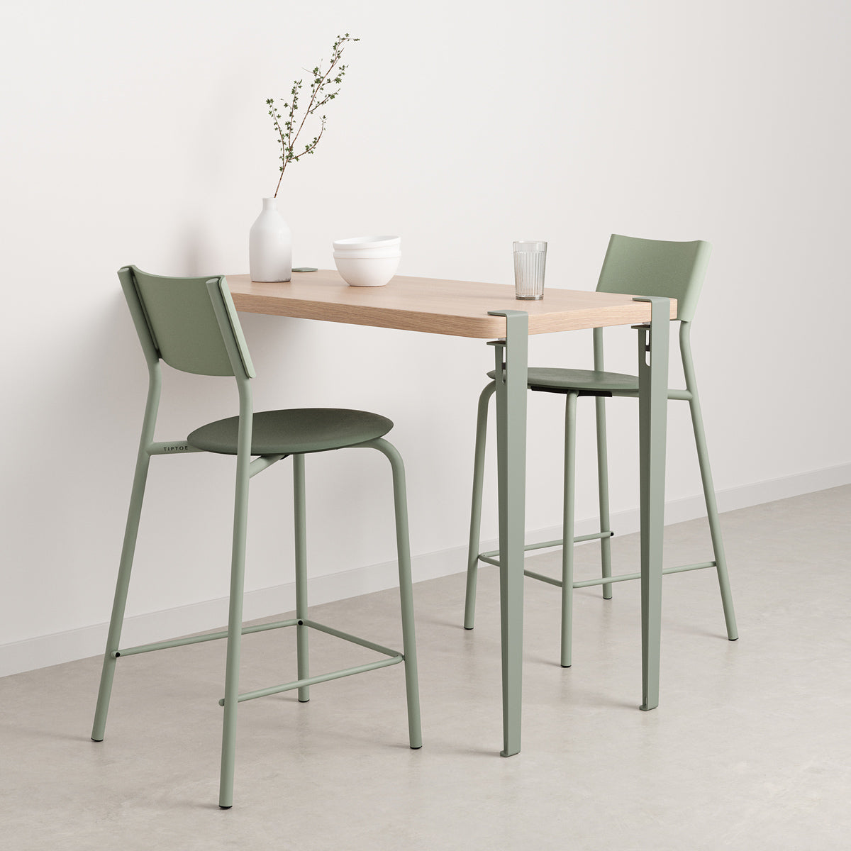 The 90 cm high legs from Tiptoe are perfect for a work table, a sideboard or a high table. The legs can be combined with all kinds of surfaces.