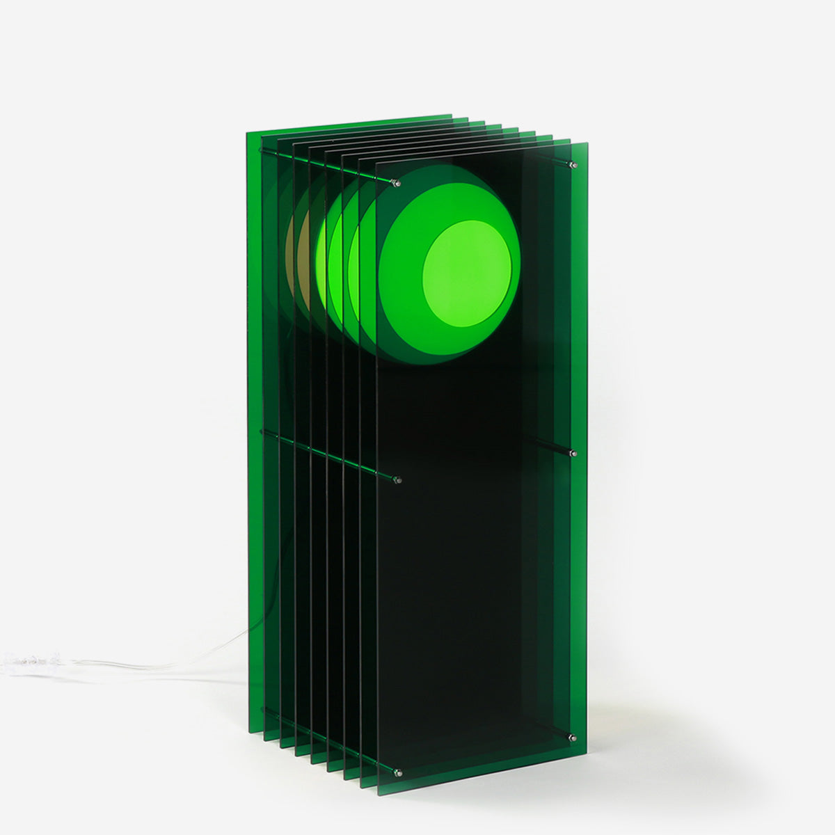 Auf Vietnamesisch bedeutet LỚP "Schichten", ein passender Name, denn sobald sie beleuchtet werden, erzeugen die Acrylschichten der LỚP Lampen faszinierende Reflexionen der Kugel im Inneren. Diese erinnern an eine Bewegungsspur, wie sie von einer sich bewegenden Kugel hinterlassen wird. Während die Kugel selbst statisch bleibt, verleihen ihre vielfältigen Reflexionen dem Raum eine dynamische Aura.
