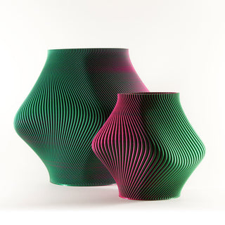 The Bloz design family has an asymmetrical and slightly blob-like shape that looks different from every angle. The shape is a beautiful eye-catcher, the fine texture of the material delights the eyes and hands. And the color: the material creates a dramatic transition from pink to green. This color morphosis underlines the movement inherent in the design of the Bloz vases and creates a captivating eye-catcher for your home.