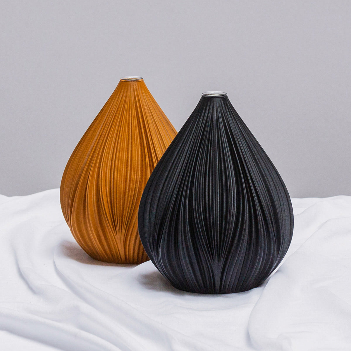 The vases by Sheyn. from Vienna with their exciting textures and balanced, interesting shapes are produced using 3D printing. The vases are fitted with a precisely fitting, removable glass inside into which you can pour the water. Another plus: the corn-based material used is sustainable and recyclable.