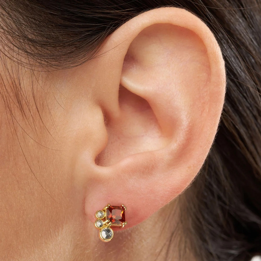 Ohrstecker aus vergoldetem Messing mit roten Kristallen