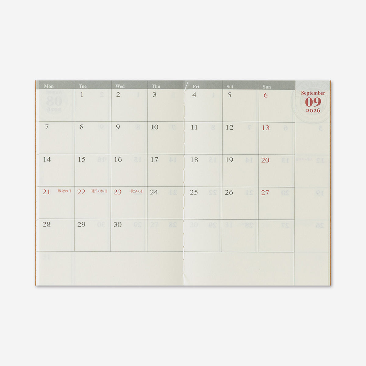 TRAVELER’S Notebook Passport Size Kalender 2026