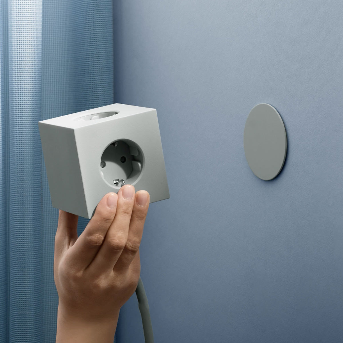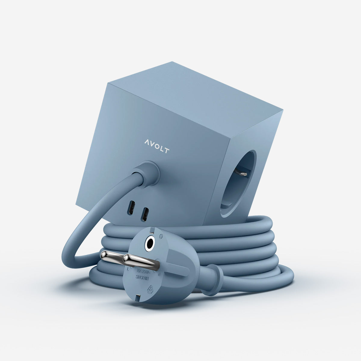 Minimalismus im Design, Maximalismus im Nutzen: der Square 1 USB-C von AVOLT ist der Mehrfachstecker, den wir brauchen. Er bietet drei Schuko-Steckdosen vom Typ F plus zwei USB-Anschlüsse vom Typ C mit bis zu 30 W Ladeleistung – und das alles an einem kleinen schicken quadratischen Würfel, den mit einem hochflexiblen, 1,8 m langen Stromkabel angeschlossen wird. Der Sockel des Produkts ist magnetisch und hält perfekt an der mitgelieferten Magnetplatte mit vormontiertem Klebestreifen, die du zum Beispiel an einer glatten Wand oder einem Regal befestigen kannst.
