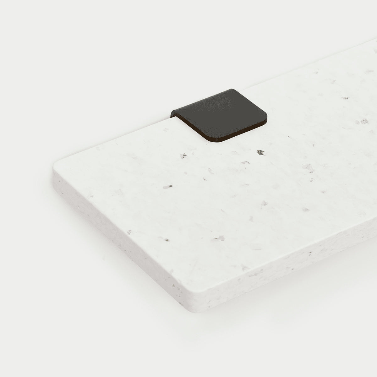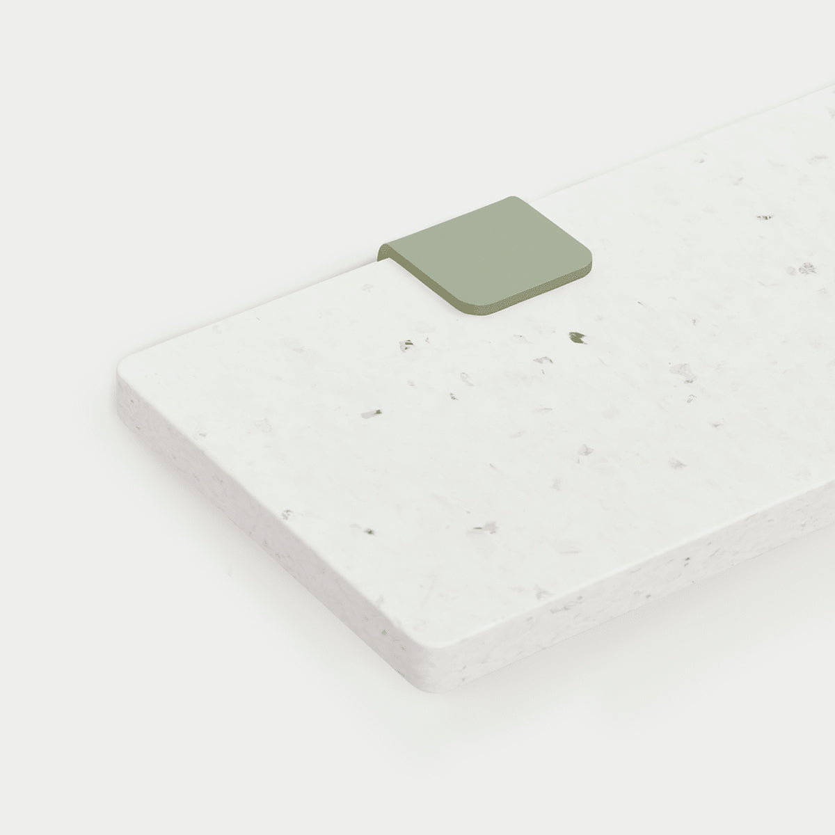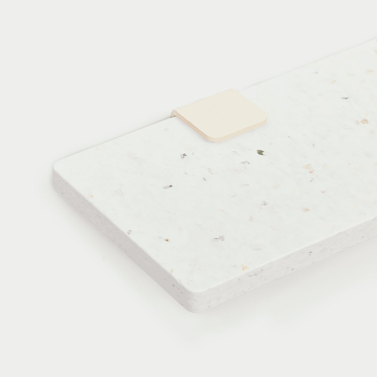 This white board is made from around 100 yoghurt pots - which explains the elegant white color of the shelf. The gold and silver colors come from label fragments. The design is a nod to terrazzo, which is traditionally made from waste from other mineral materials. Each shelf is unique and has its own individual story: plastic that gets a second life through recycling.