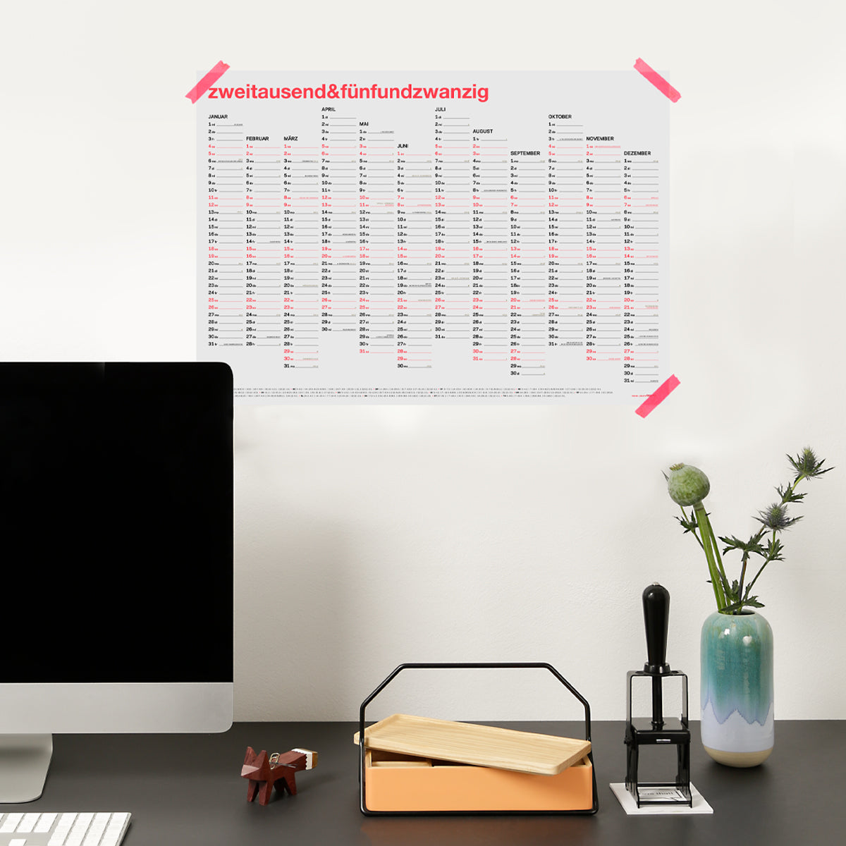 Das ganze Jahr auf einen Blick, mit ganz viel Platz für alle Termine, Urlaube, Verabredungen, Geburtstage, und was sonst noch so ansteht.