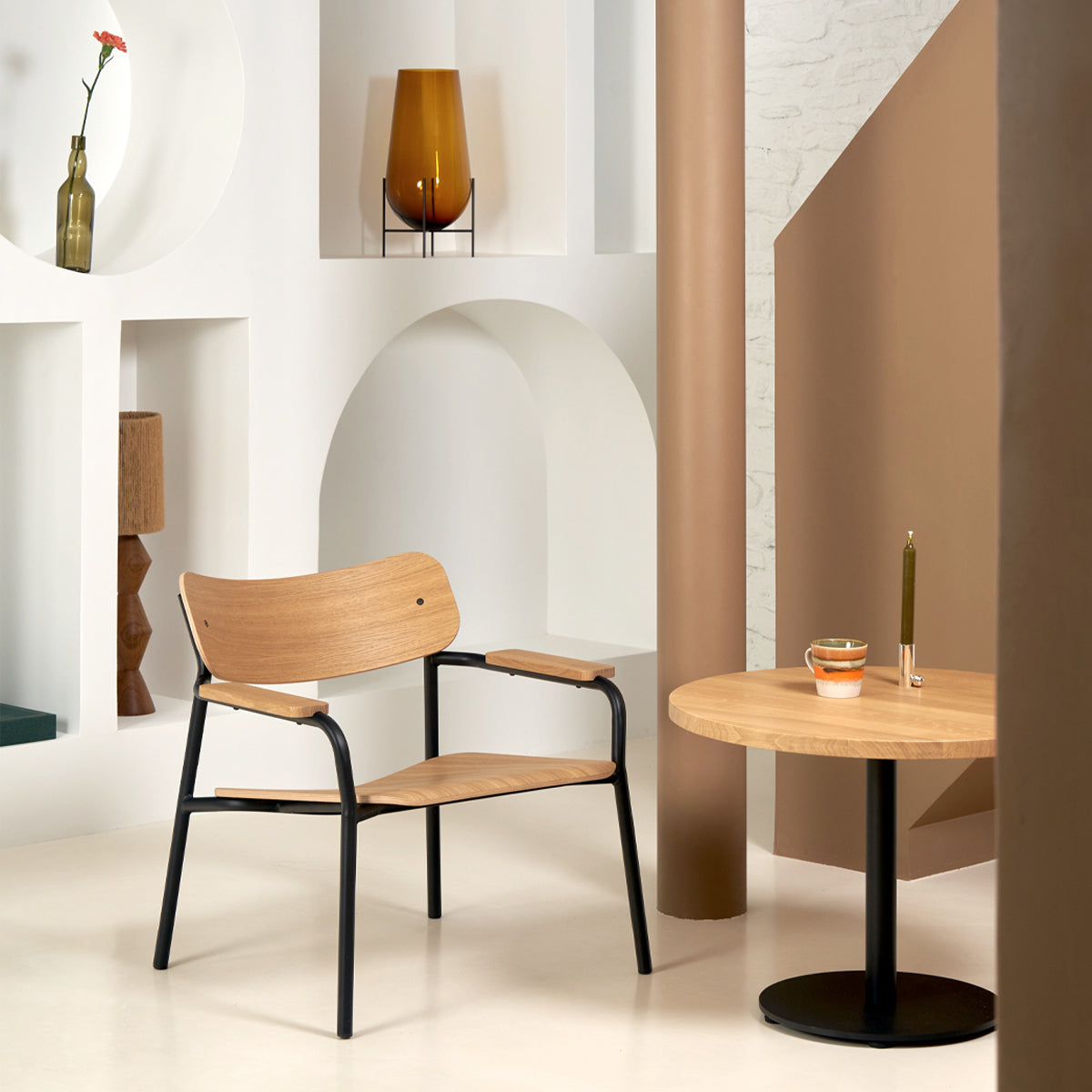 Der Stuhl ÉTUDE von Tiptoe ist eine gelungene Neuinterpretation eines klassischen Designs. Mit seiner klaren Linienführung und durchdachten Details vereint er Ästhetik und Komfort auf eine subtile Weise. Das Gestell aus pulverbeschichtetem Stahl und die Holzfläche aus natürlicher Eiche bilden einen harmonischen Kontrast, der sich sowohl in modernen als auch in klassischen Interieurs gut macht.
