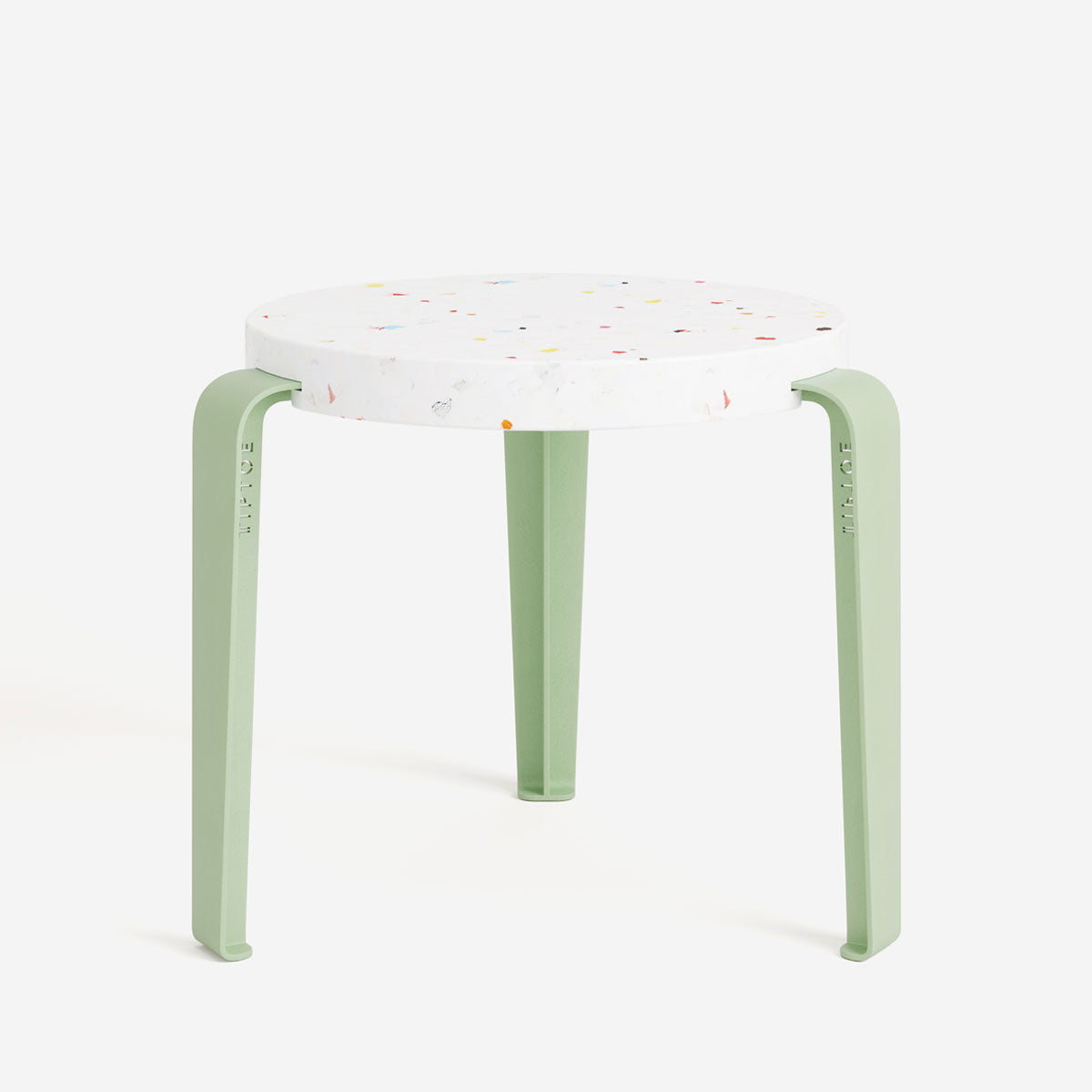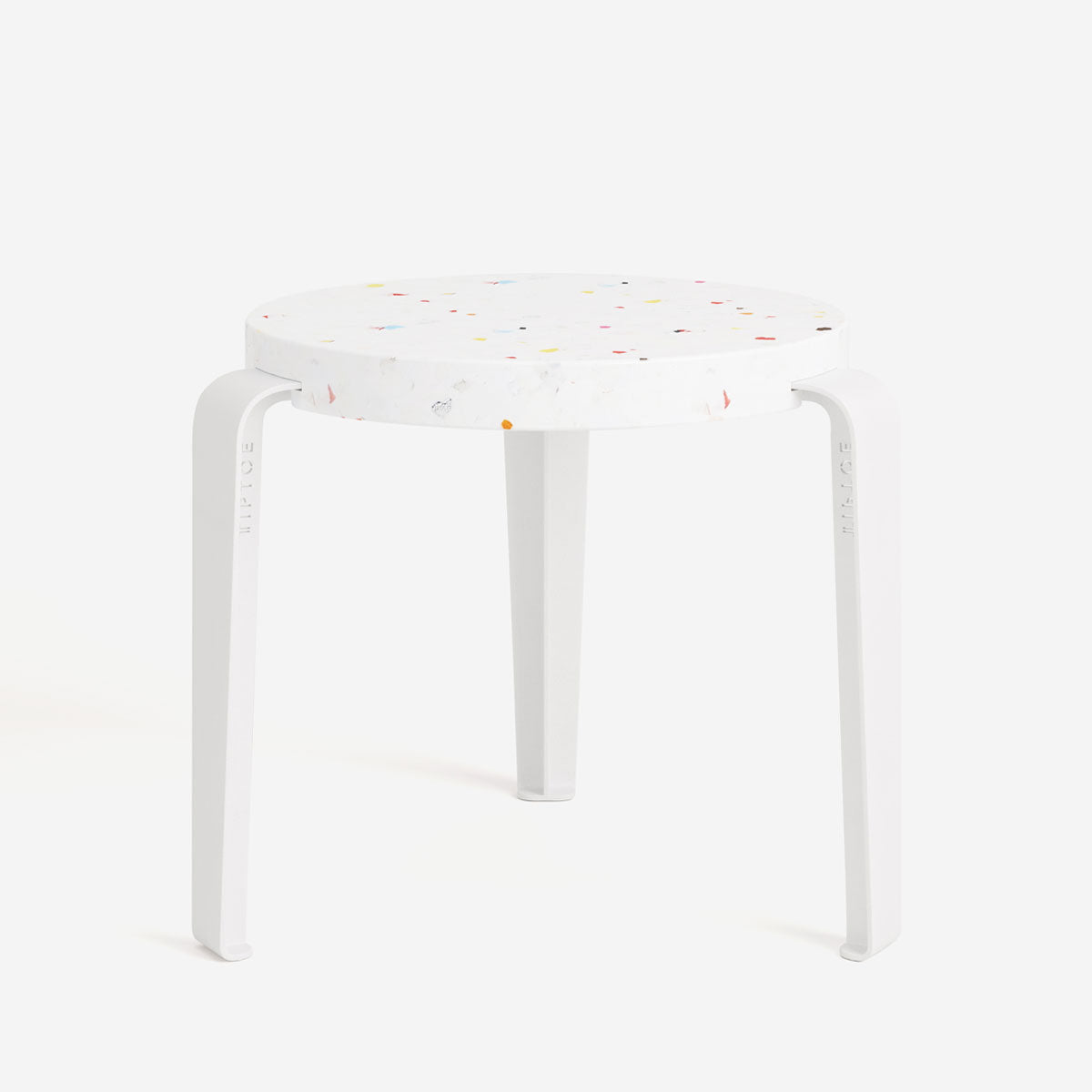 The seats of the children's stools are made of recycled plastic - from old children's toys! This is where the brightly colored spots that run through the surface come from (and the name Tutti Frutti, of course!).
