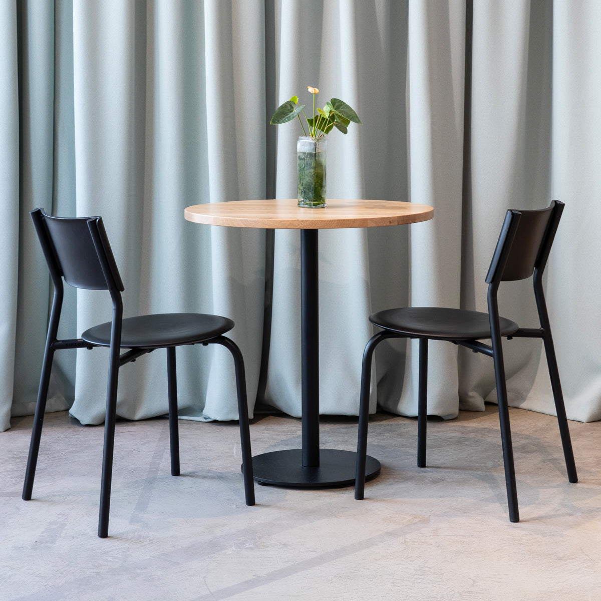 Der Bistrotisch MOKA von Tiptoe – puristisch und funktional. Dieser Tisch ist perfekt für kleine Räume und sorgt für eine gemütliche Atmosphäre, sei es in der Küche, im Esszimmer oder als charmantes Extra in deinem Café oder Restaurant. Die Kombination aus recyceltem Kunststoff und pulverbeschichtetem Stahl schafft einen Tisch, der sowohl robust als auch ästhetisch ist – ganz im Sinne des minimalistischen Designs.
