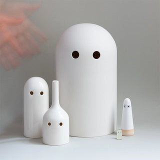 Ein Arhoj-Original ist ganz erwachsen geworden! Auf Basis und als XL-Version des beliebten Ghost Light Teelichthalters ist die Ghost Lamp entwickelt worden. Der charmante weiße Freunde sitzt auf deinem Schreibtisch, dem Bücherregal oder einer Fensterbank. Das lichtdurchlässige, weiße, unglasierte Porzellan gibt auf Knopfdruck ein sanftes, beruhigendes Licht ab.
