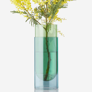 Die Bouquet Tube Vase von Studio About spielt mit Dimensionen und Farben und zieht mit ihrem ungewöhnlichen Design die Blicke auf sich. Sie besteht aus drei Glaselementen in unterschiedlichen Farben, die mit ihrer Kombination der Vase eine besondere Tiefe und Lebendigkeit verleihen.