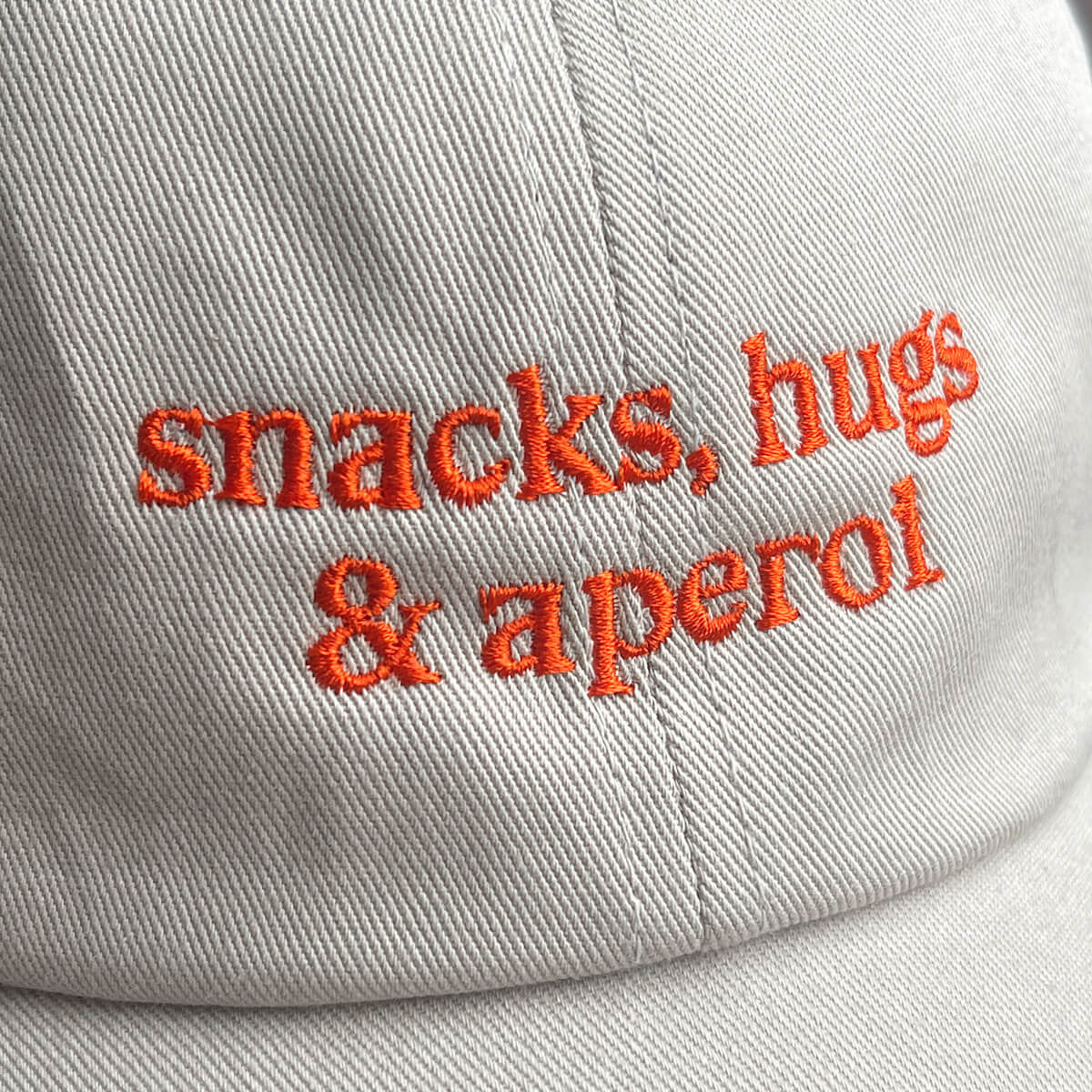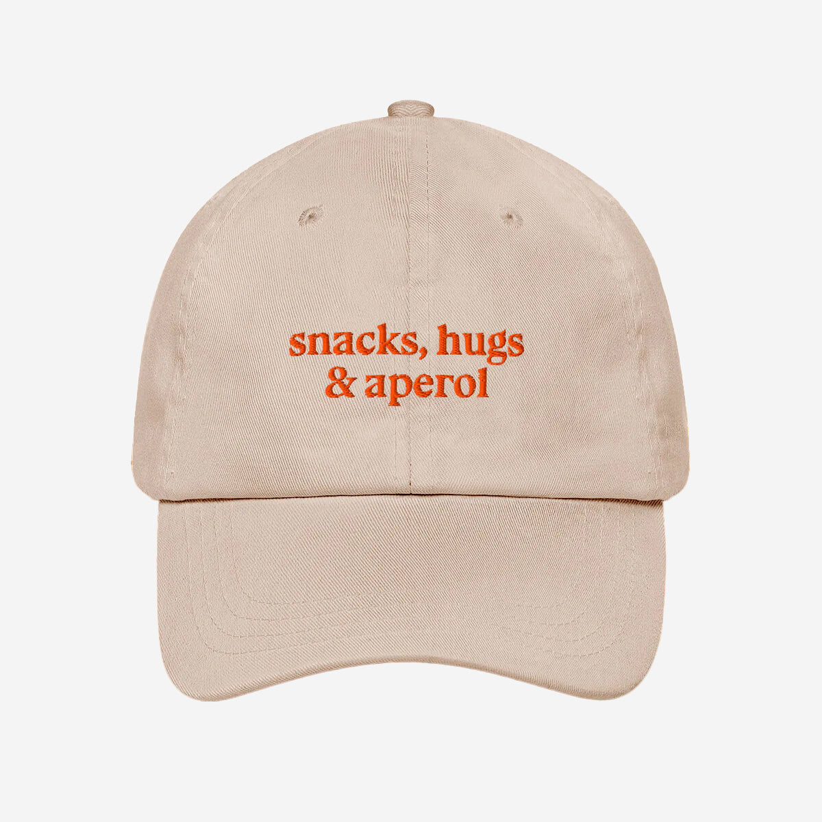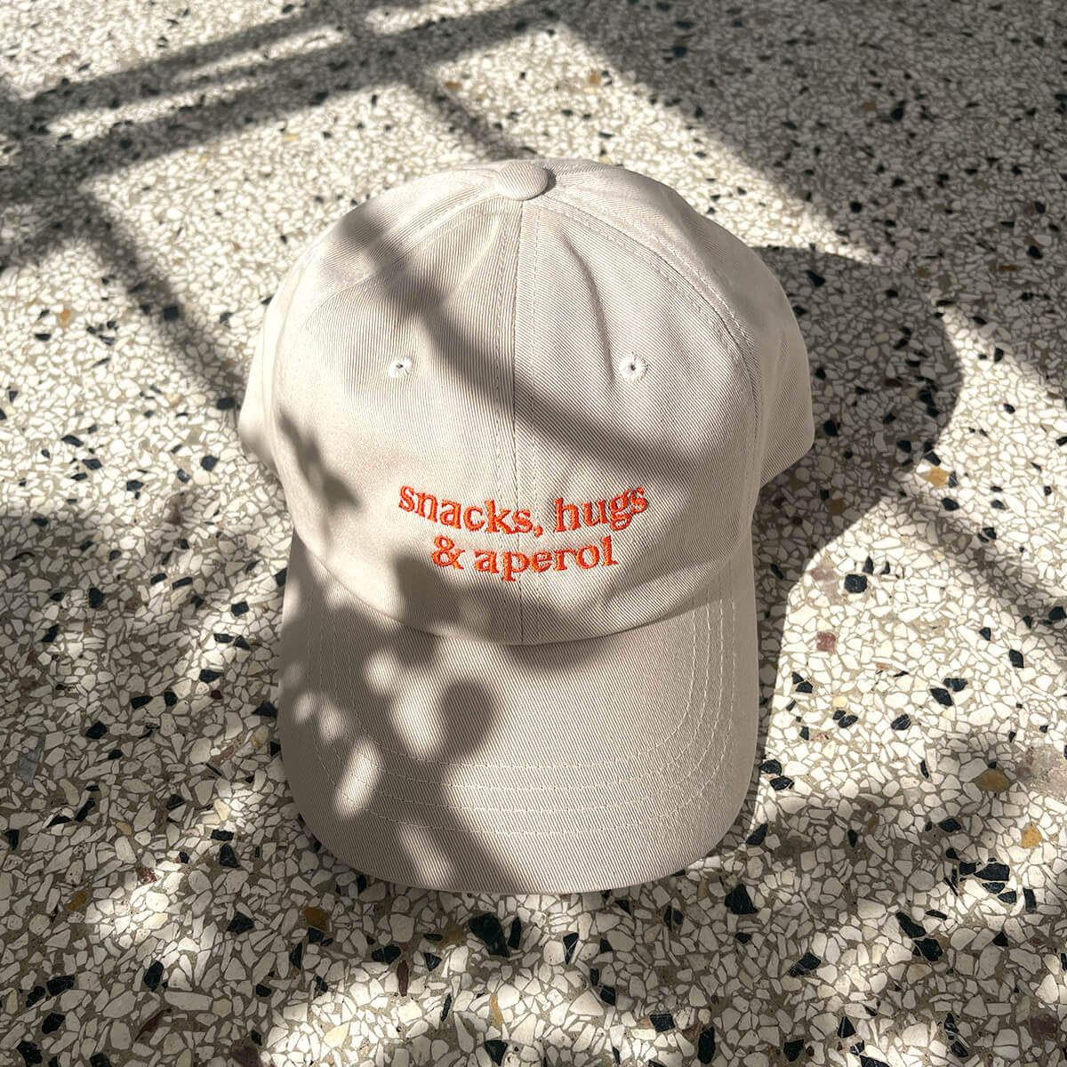 Studio Ciao weiß, was man zum Dolce Vita braucht: snacks, hugs & aperol! Die Cap besitzt einen gebogenen Schirm und lässt sich dank verstellbarem Riemen an jede Kopfform anpassen.