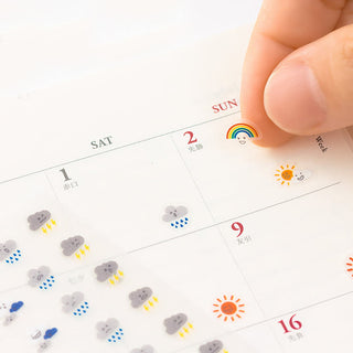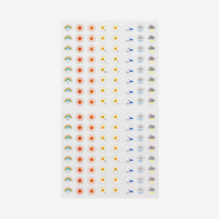 Wetterstimmung im Blick – mit den Weather Diary Stickern von Midori bringst du Farbe in deinen Kalender, dein Notizbuch oder Tagebuch. Diese Mini-Sticker mit verschiedenen Wettermotiven – von Sonne bis Regen – sind ideal, um das Wetter zu dokumentieren oder als kreativen Mood Tracker zu nutzen.