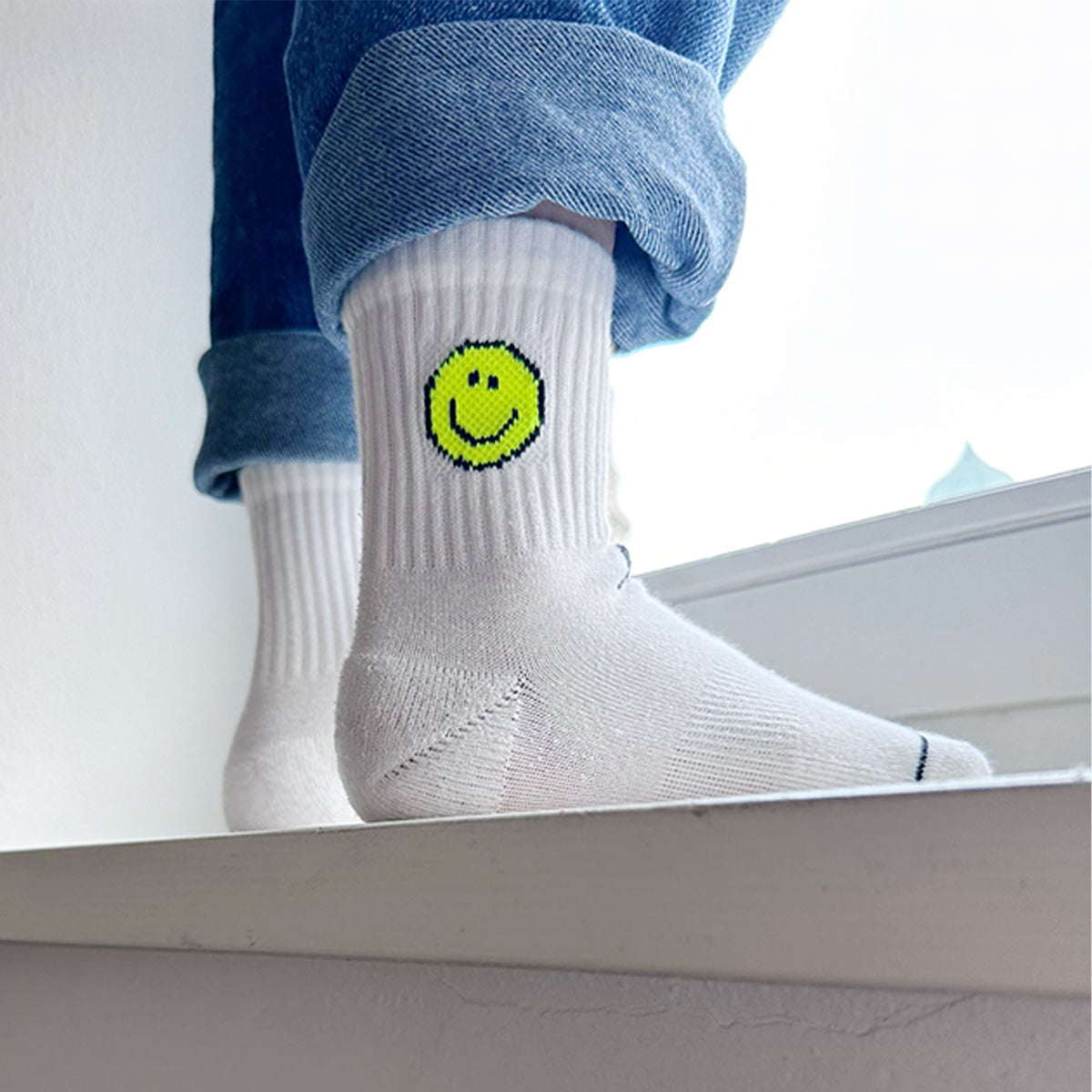 Lächeln steckt an – besonders, wenn’s auf den Socken sitzt. Die Icon Smile Neon Kids von Ooley bringen den ikonischen Smiley auf kleine Füße. Mit Bio-Baumwolle, gepolsterter Sohle und genau der richtigen Portion Fröhlichkeit. Für alle, die schon morgens mit einem Grinsen loslaufen.