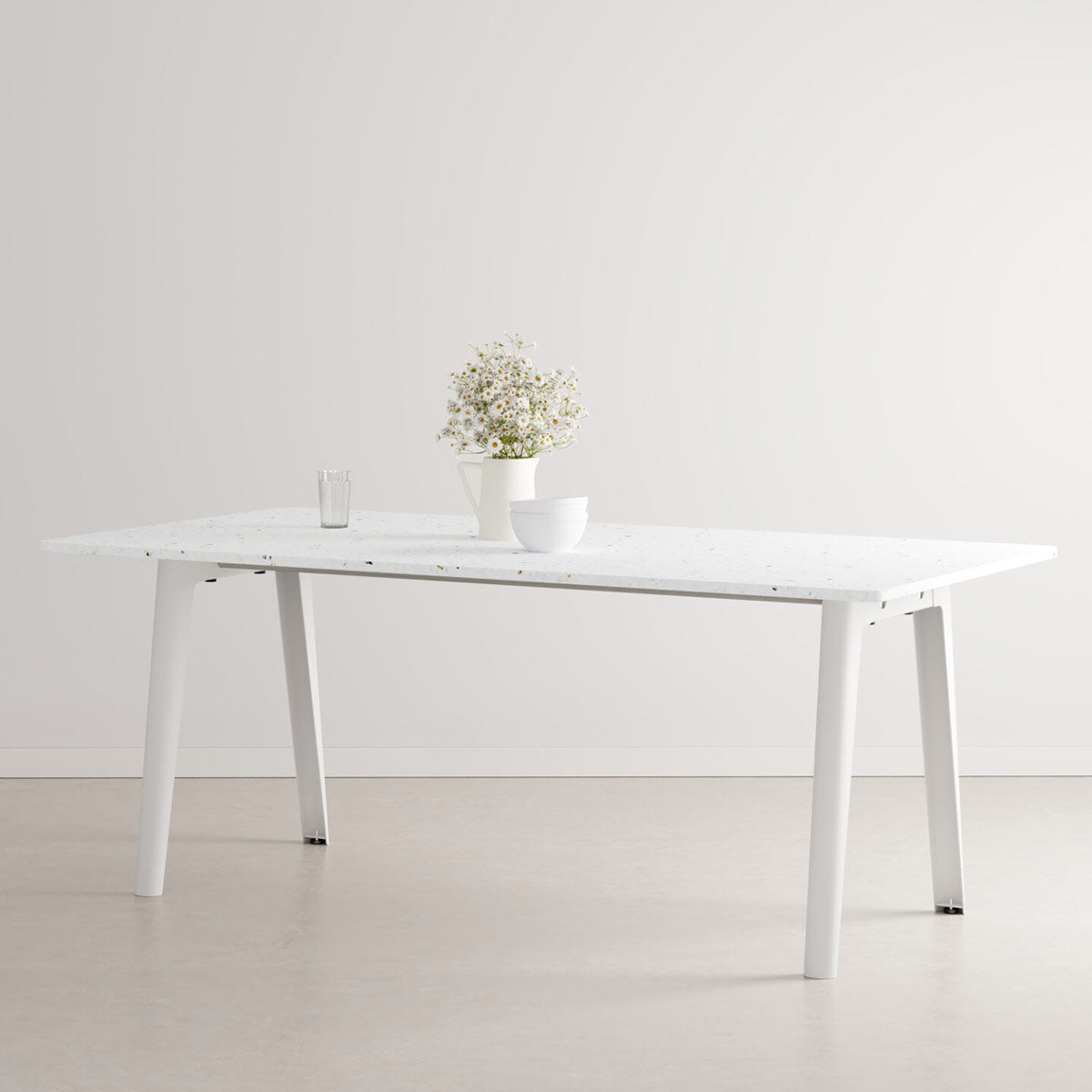 Minimalist, beautiful, highly functional and sustainable: the NEW MODERN Dining Table by TIPTOE with a table top made of recycled plastic is the perfect dining table for the whole family. Depending on the size chosen, up to 12 people can sit at the long table! The NEW MODERN Dining Table also cuts a fine figure as a meeting table.