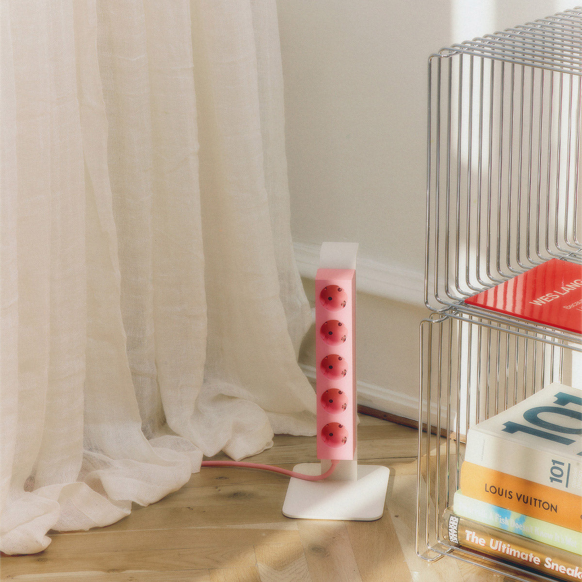 Noch mehr Ordnung für den Kabelsalat: die magnetischen Steckerleisten von Pedestal kannst du ganz einfach an den Power Tower andocken, statt die auf den Boden zu legen. Sieht noch besser aus!