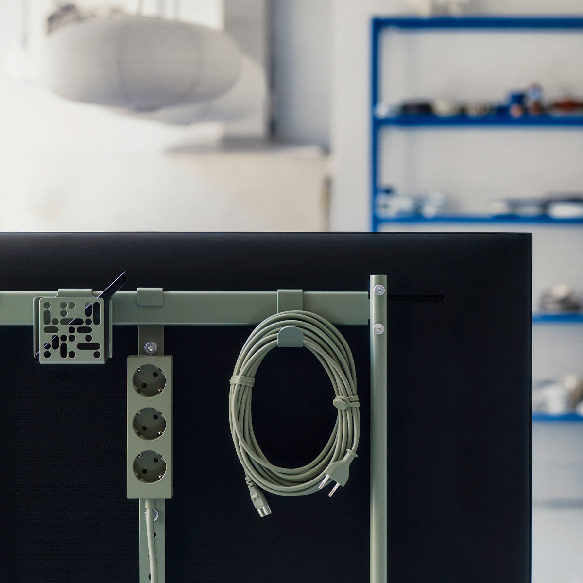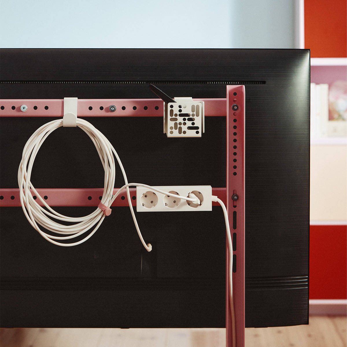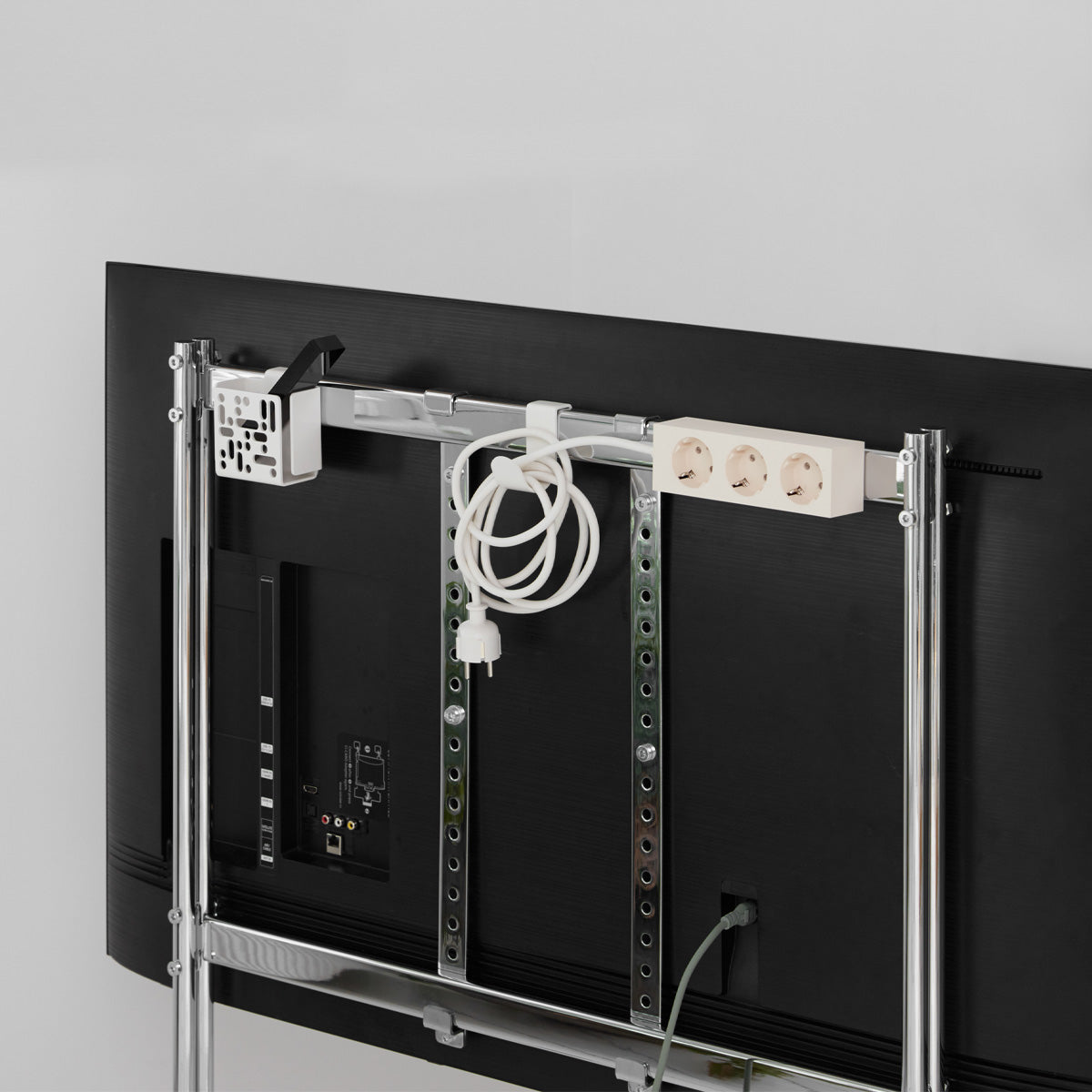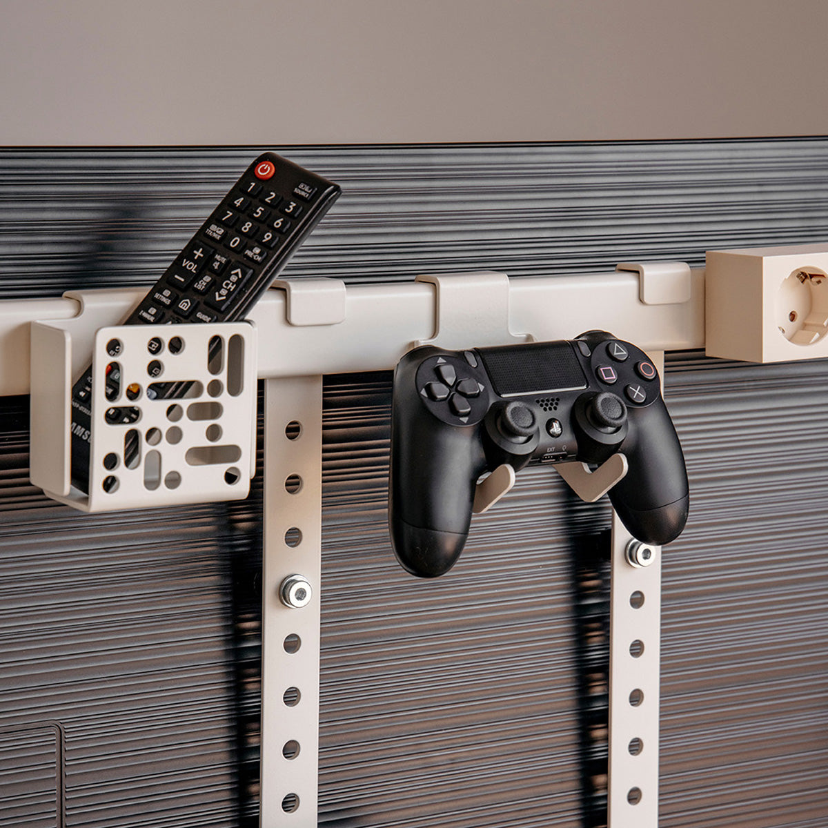 Die Remote Box Mount wird einfach hinten am TV-Ständer von Pedestal angebracht und bietet einen zentralen Platz für Fernbedienungen und kleine Geräte. So bleibt alles übersichtlich und griffbereit – ohne dass sich Kabel oder Zubehör überall verteilen.